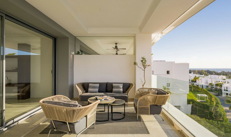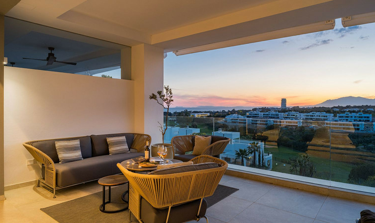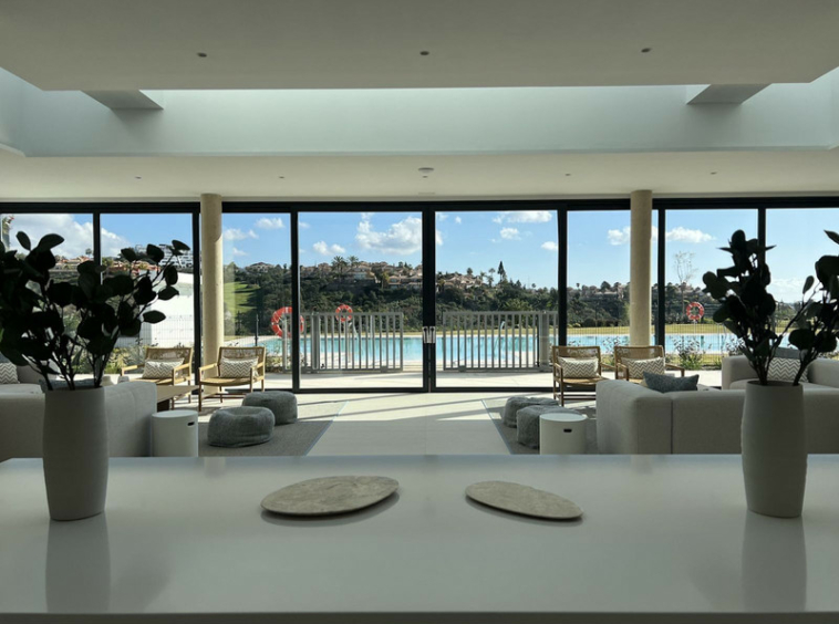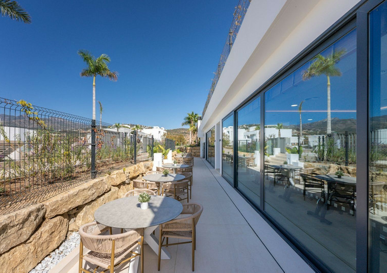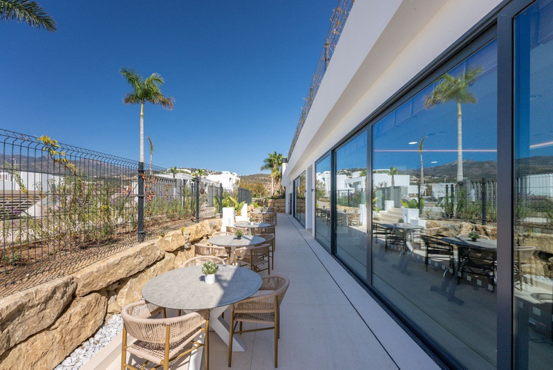 La terraza orientada al oeste es amplia y versátil, con amplio espacio para crear el espacio exterior ideal: para cenar, relajarse o tomar el sol, todo ello mientras disfruta de las vistas panorámicas al Mediterráneo, Gibraltar, La Concha y el campo de golf de Santa Clara. ¡Las puestas de sol aquí son absolutamente impresionantes!