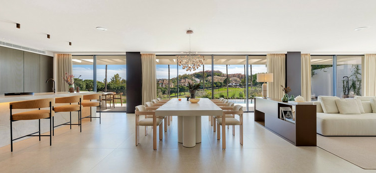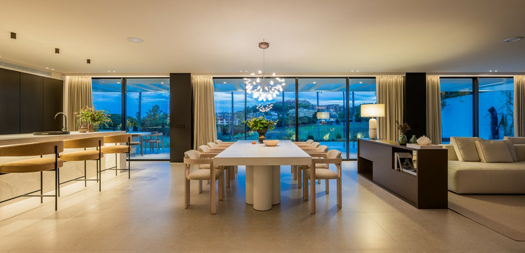 Una villa de diseño excepcional, ubicada en primera línea de golf, es sinónimo de entretenimiento y golf. Al entrar en la villa, le da la bienvenida un moderno y elegante espacio con una bonita cocina de diseño abierta al comedor y la sala de estar. A través de las amplias puertas de cristal de suelo a techo, disfrutará de unas impresionantes vistas al campo de golf de Los Naranjos.