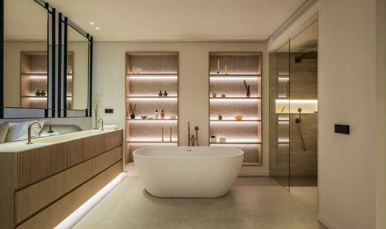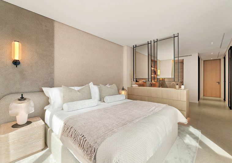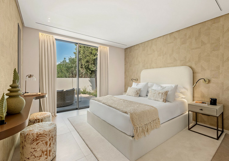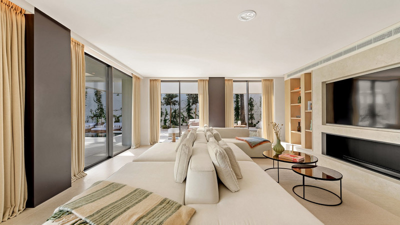 Además, en esta planta se encuentran cuatro dormitorios, todos con baño en suite y terraza propia. El dormitorio principal, con sus casi 40 m², incluye un vestidor y un baño de diseño en un espacio abierto que crea una lujosa sensación de suite. La zona de la piscina y la terraza ofrecen varias zonas de estar y fuentes conectadas a la piscina. También dispone de un garaje para buggies con acceso directo al campo de golf.