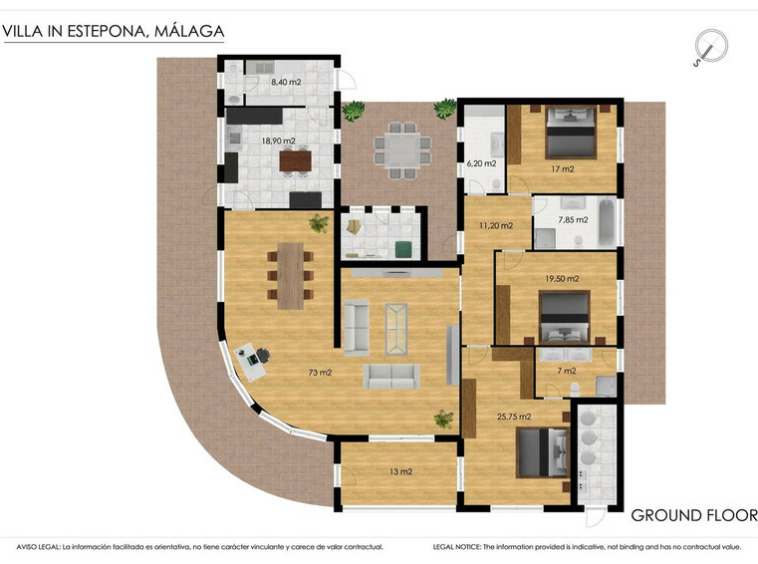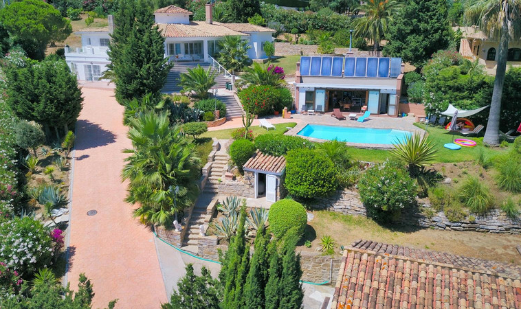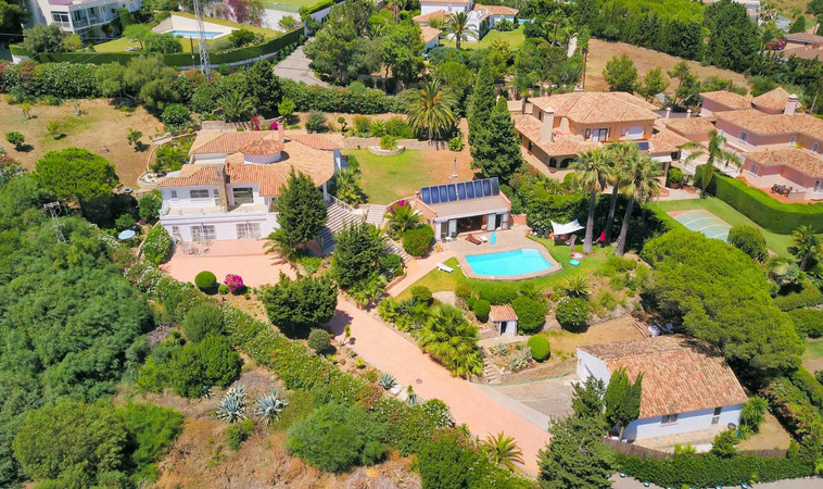 Esta extraordinaria propiedad en Estepona destaca por su amplio terreno de 3.600 m² y su privilegiada ubicación con hermosas vistas al mar hasta África y Gibraltar.