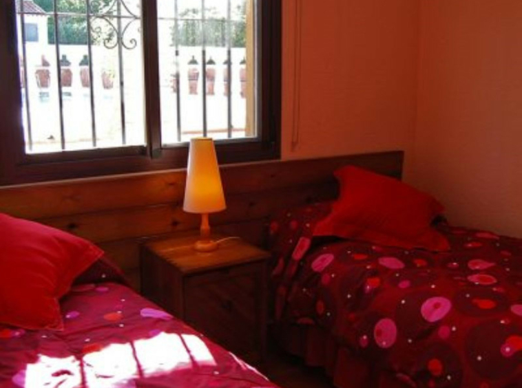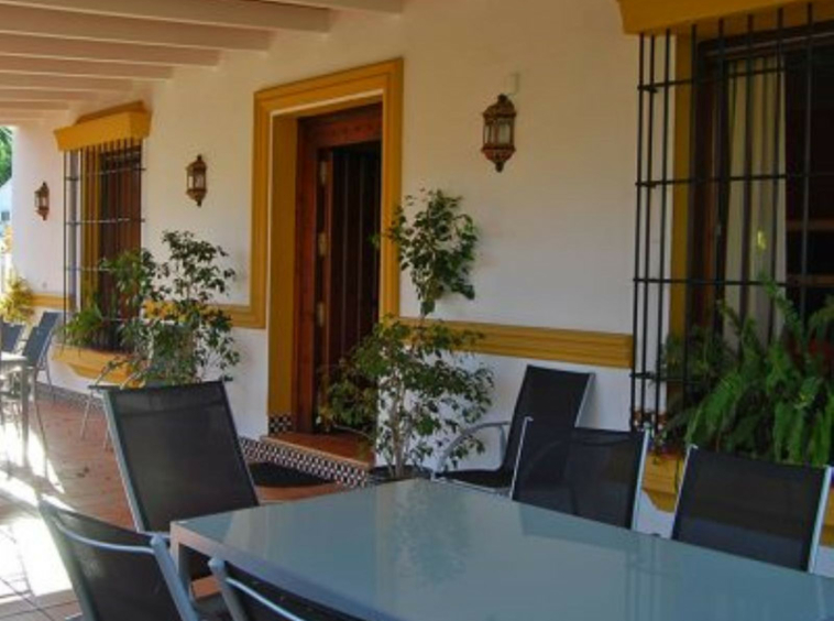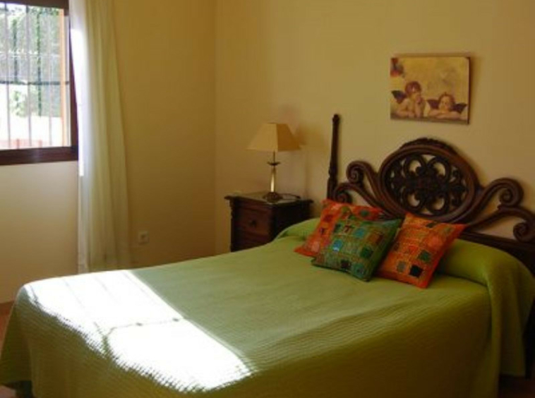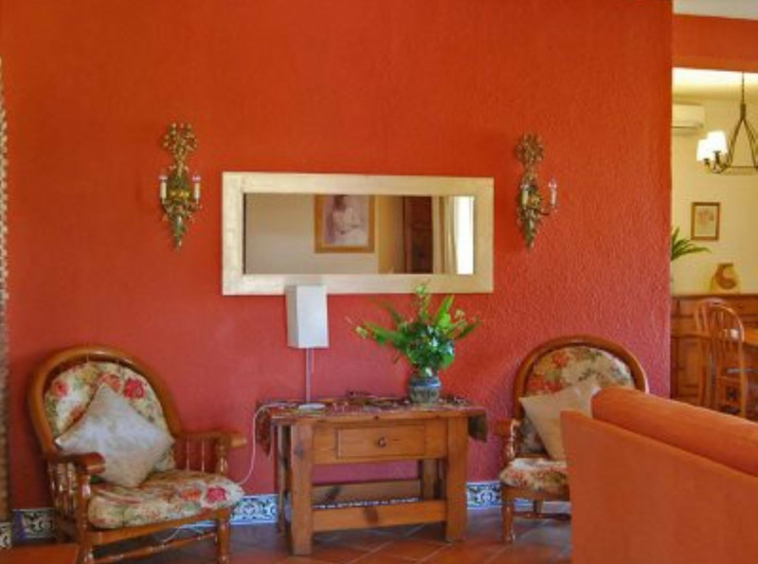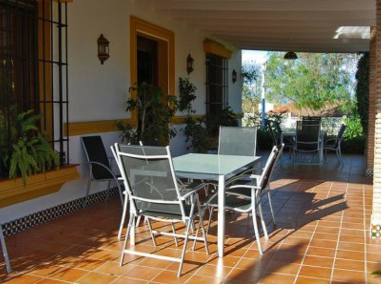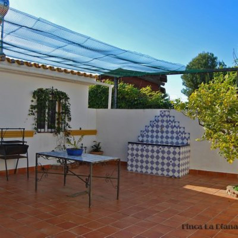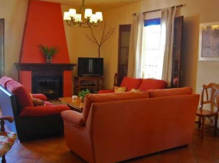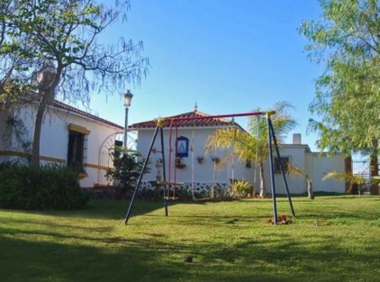 La casa principal, de estilo andaluz rústico, tiene una sola planta. El salón consta de una chimenea y zona de comedor. La cocina está equipada de electrodomésticos y zona de lavandería.Un patio andaluz con una fuente una la vivienda principal con la de huéspedes.