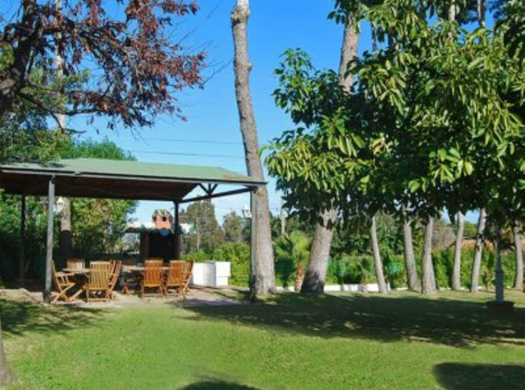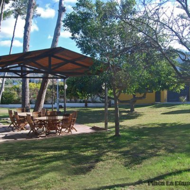 En el jardin que rodea a la vivienda, hay zona para barbacoa, con una pérgola con zona de comer y barbacoa. En el jardin hay dos zonas de baños exteriores.