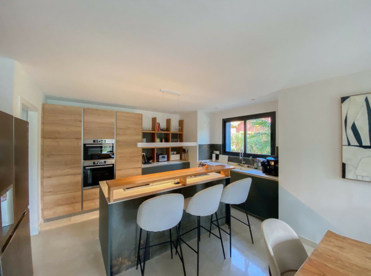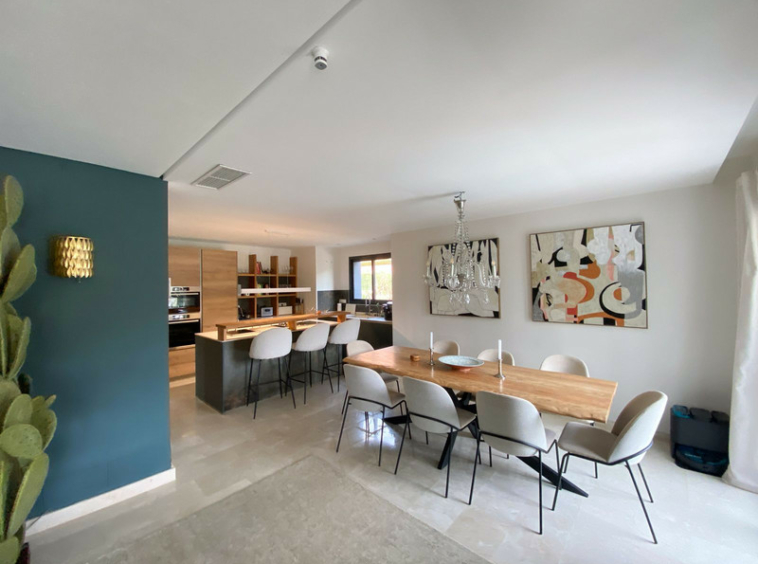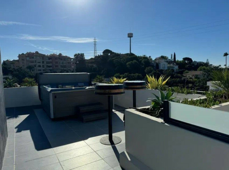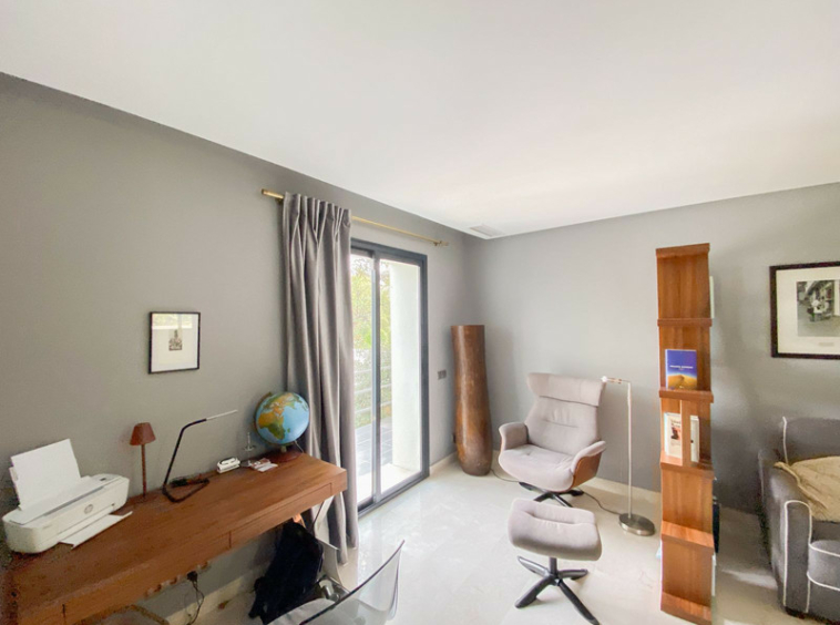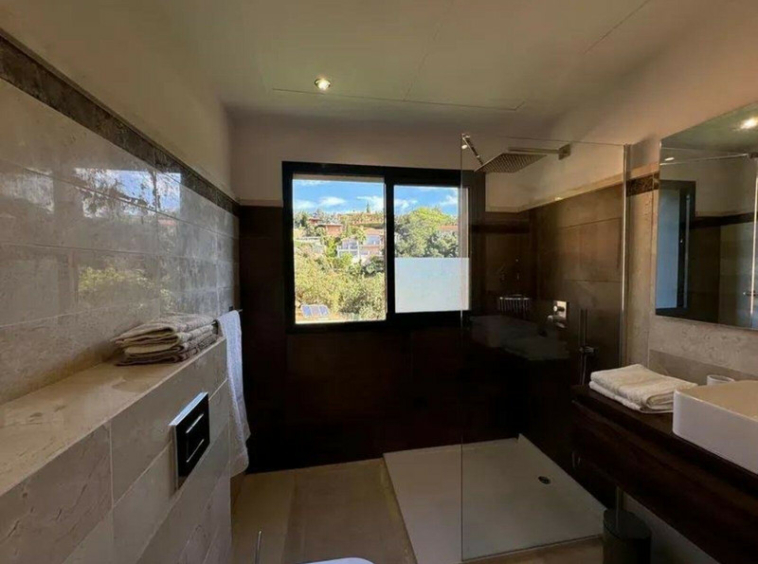 En planta baja cuenta con un amplio salon comedor, una biblioteca despacho que puede convertirse en dormitorio, baño completo, cocina totalmente equipada. En la primera planta la vivienda tiene 3 dormitorios y dos baños y para terminar contamos con una sala de estar, que da acceso a la terraza en la que cuenta con un estupendo jacuzzi con unas vistas increíbles hacia el mar. Moderna piscina climatizada en el jardín. La villa cuenta con preinstalación de ascensor, alarma y cierres automáticos en ambos accesos a la propiedad.