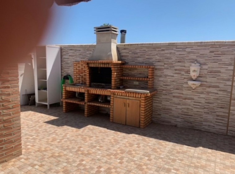 Zona de barbacoa con fregadero y todas las comodidades, piscina privada con baño y jardín privado, trastero, aparcamiento para tres o cuatro coches.