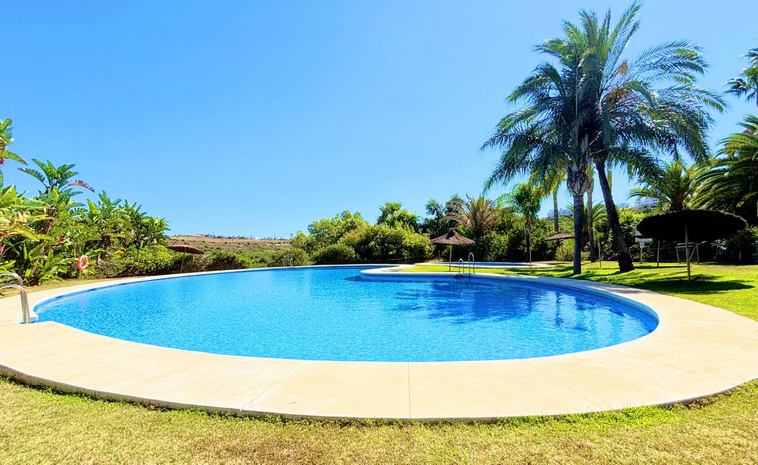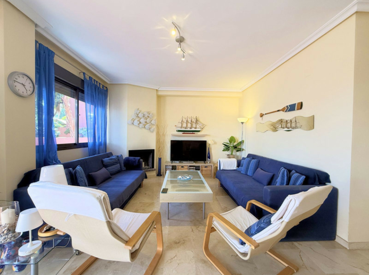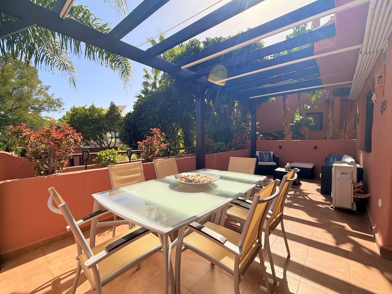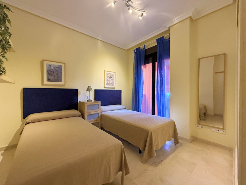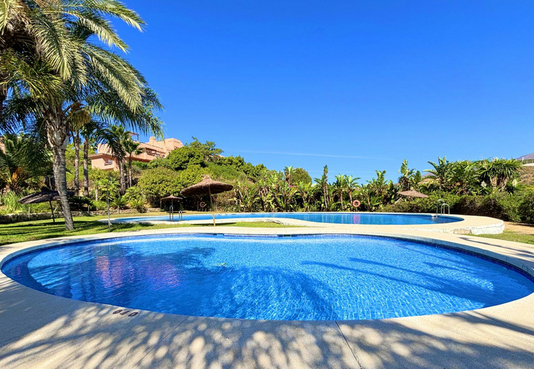 MAGNIFICO APARTAMENTO EN URBANIZACIÓN CERRADA CON VISTAS PARCIALES AL MAR. Ubicación inmejorable en una preciosa urbanización de estilo tropical, cuidadosamente mantenida, que ofrece exuberantes jardines, palmeras, varias piscinas y pistas de pádel, a tan solo 1 km de bonitas playas con acceso peatonal y a escasos 5 minutos en coche del encantador Puerto de la Duquesa, con todos los servicios y opciones de ocio, además de estar a solo 10 minutos de Estepona.