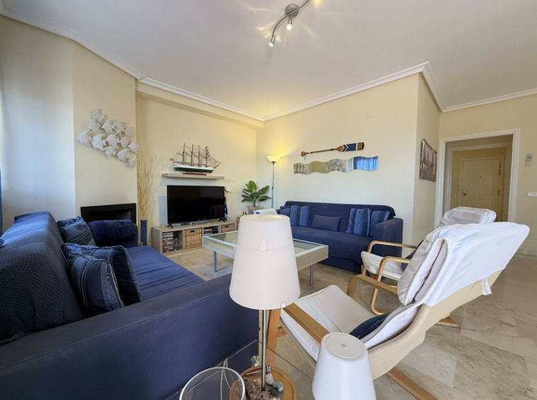 Esta luminosa y acogedora vivienda cuenta con 2 dormitorios, 2 baños, cocina con barra americana, salón con chimenea y acceso directo a una agradable terraza orientada al sur con vistas parciales al mar, ideal para relajarse y disfrutar del entorno. Se vende con plaza de garaje incluida en el precio. Una propiedad cómoda, bien distribuida, en un entorno tranquilo y muy atractivo, perfecta como hogar permanente o segunda residencia.