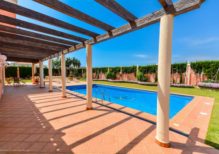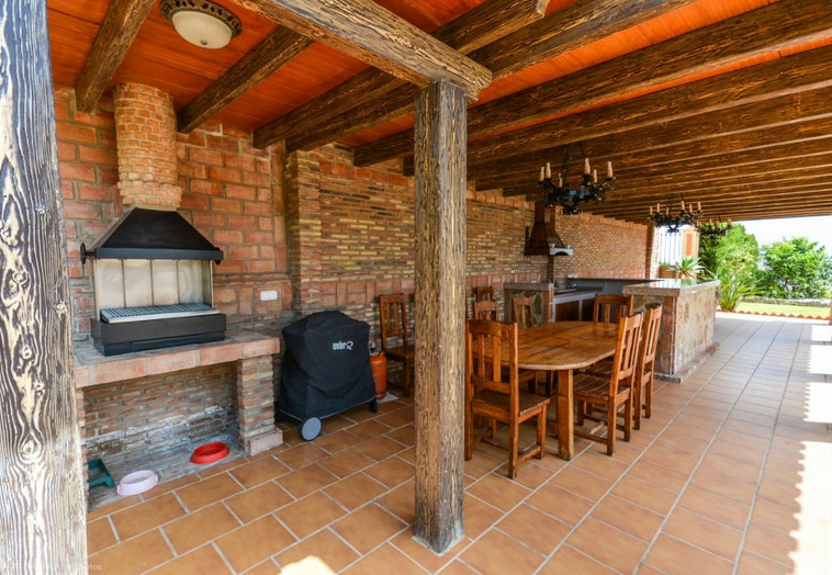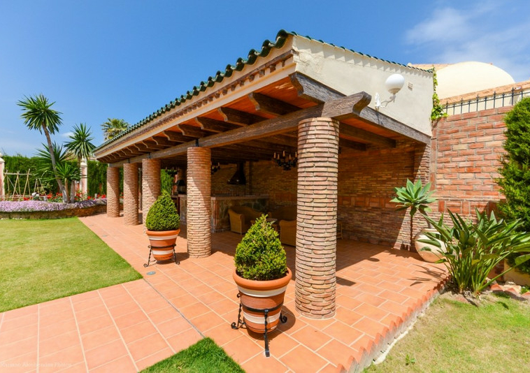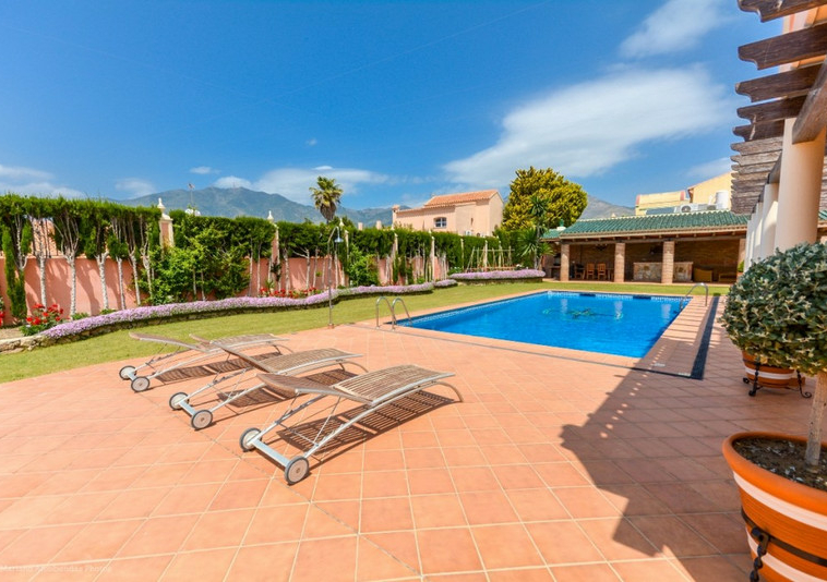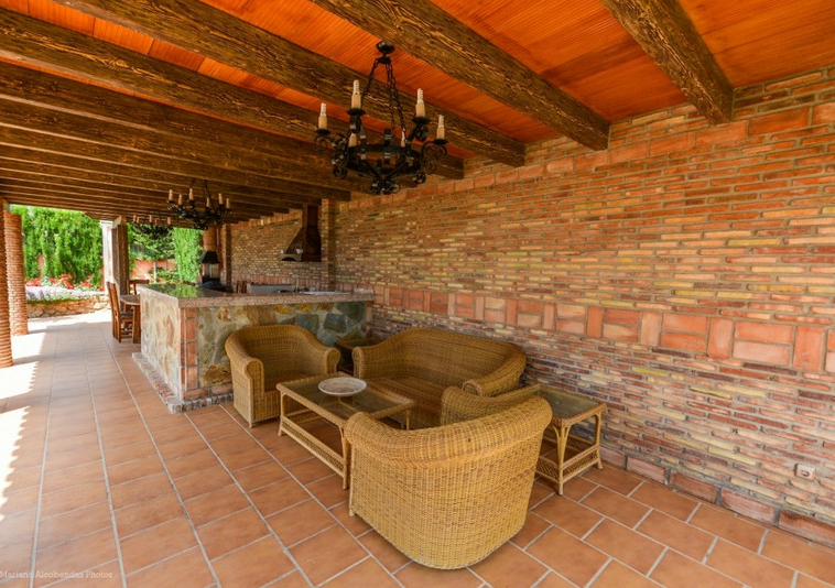 Exterior: Amplio jardín con piscina y zona de barbacoa, terraza con vistas, jardín delantero con fuente. Amplio garaje para 3 coches.