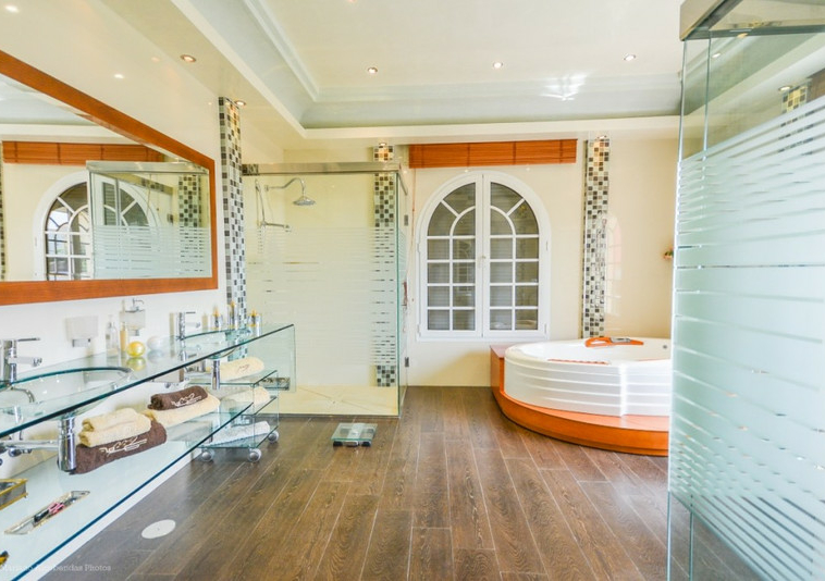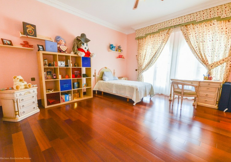 Planta baja: Amplio hall de entrada y recibidor, salón/biblioteca con chimenea, 5 amplios dormitorios con armarios empotrados y 5 baños en suite, 1 aseo de invitados y aseo con sauna. Amplio lavadero y despensa.