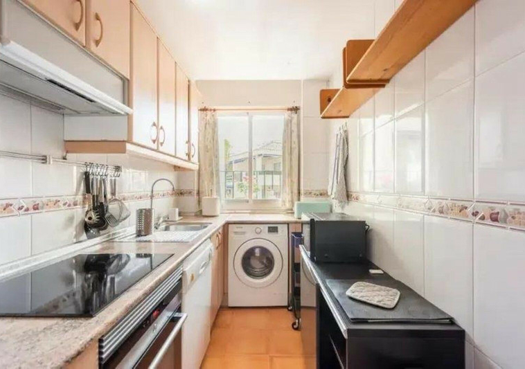 La cocina mantiene su diseño original, equipada con electrodomésticos de alta calidad. Existe la opción de integrarla con el salón para quienes prefieran un concepto más abierto y contemporáneo.