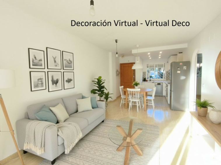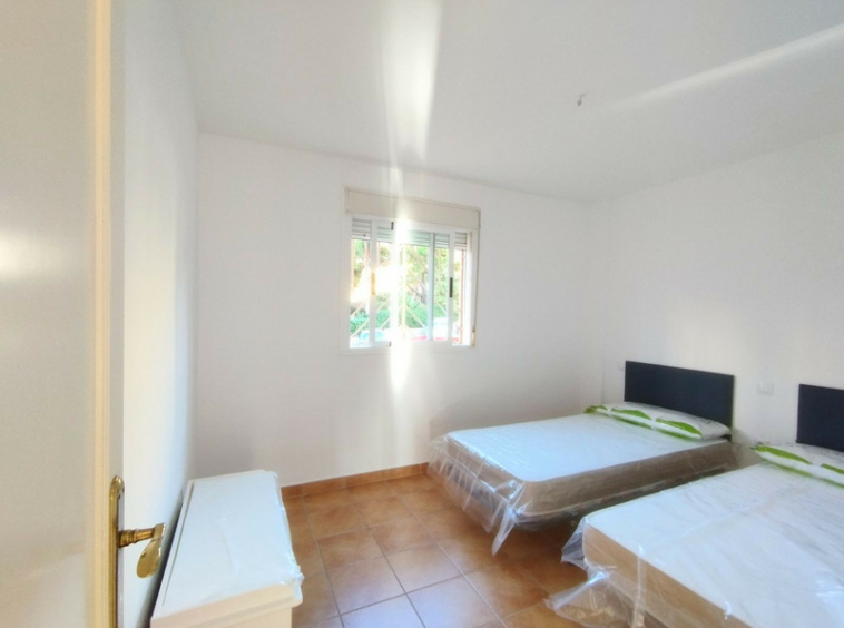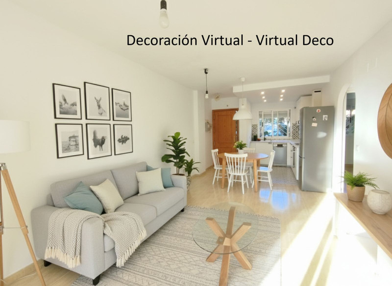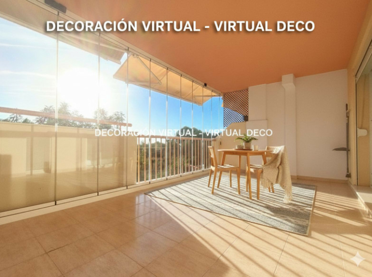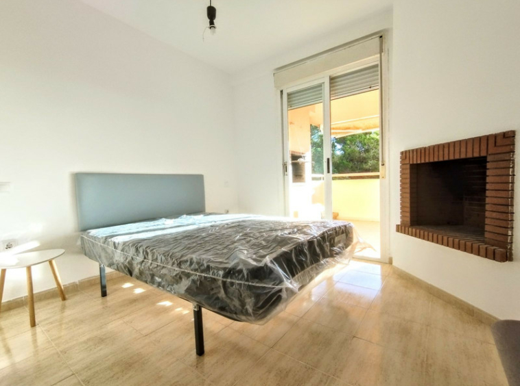 Mezcla de modernidad, luz y gran terraza. Caminando a la playa y el centro comercial. Chiringuitos y restaurantes, supermercados, todo caminando. Gran terraza, unos 30 metros cuadrados, vistas despejadas. Caminando a la playa y centro comercial. Cafetería, restaurantes, chiringuitos. También caminando a su Sport Gym favorito, unos 15 minutos. Apartamento de esquina, baño con ventana y cocina con ventana. Piscina y jardín comunitario. Parking cerrado, comunitario. Cocina recién reformada, estilo open plan. Electrodomésticos con factura. Se entrega con algún mobiliario, también nuevo. Salón y dormitorio principal con chimenea. Barbacoa de obra en la terraza.