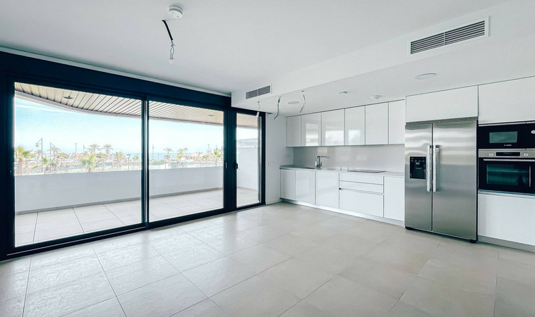 Moderno apartamento en primera línea de playa en Torremolinos. Superficie total 145 m², con 3 dormitorios, 2 baños, amplio salón-comedor con acceso a una terraza de 20 m² con vistas al mar.