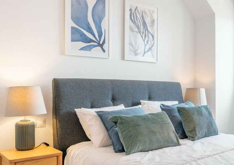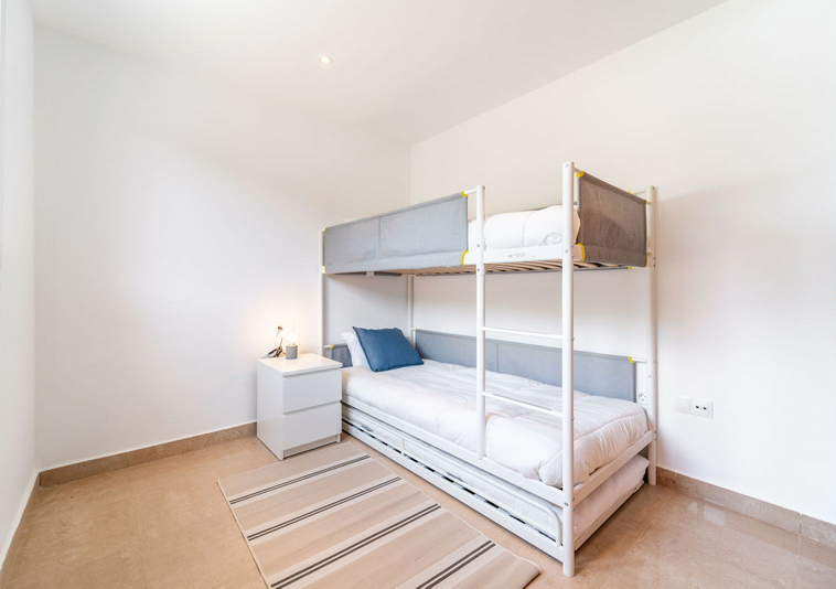 El piso de arriba está dedicado a dos dormitorios adicionales y dos baños. El dormitorio principal tiene su propio baño privado, mientras que el segundo dormitorio tiene un baño completo separado con bañera. Complementado por una terraza privada orientada al suroeste, que ofrece un santuario personal con impresionantes vistas.