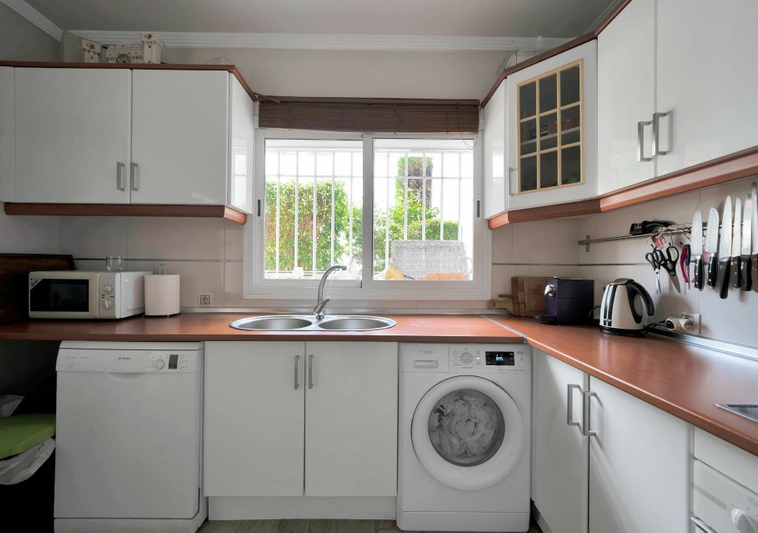 Dentro de la urbanización la casa está muy bien ubicada, orientada al sur y en esquina, con un jardín más grande que las otras casas y una entrada directa desde la calle, además de la entrada desde dentro de la urbanización a la zona de la cocina.