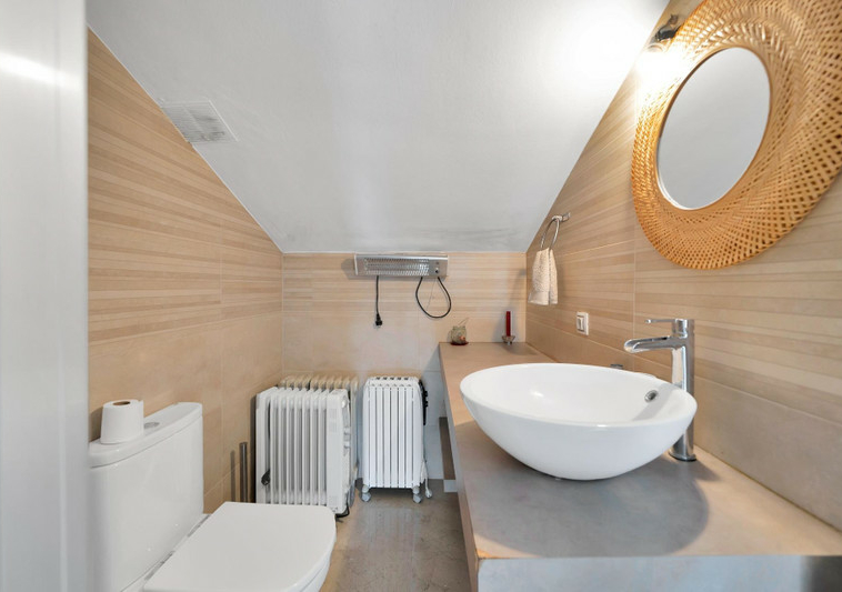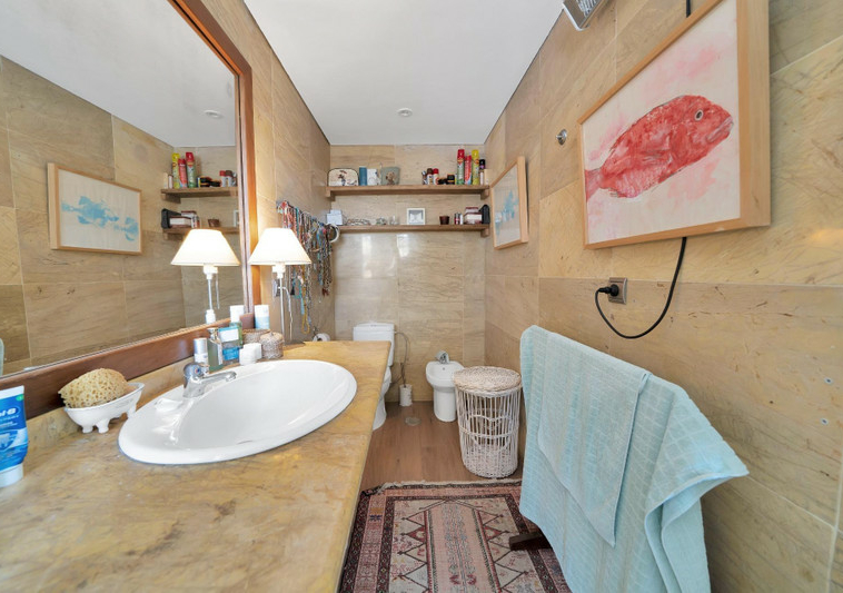 En la primera planta se encuentran dos dormitorios, cada uno con su cuarto de baño, el principal con una espaciosa terraza de 20 m2 desde la que se ve el mar.