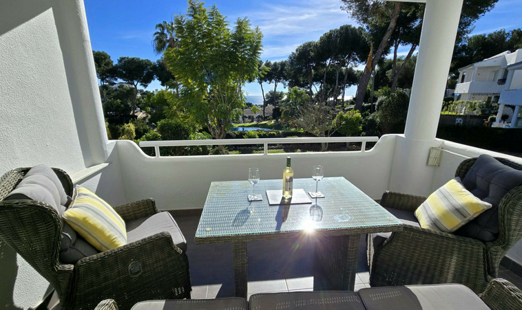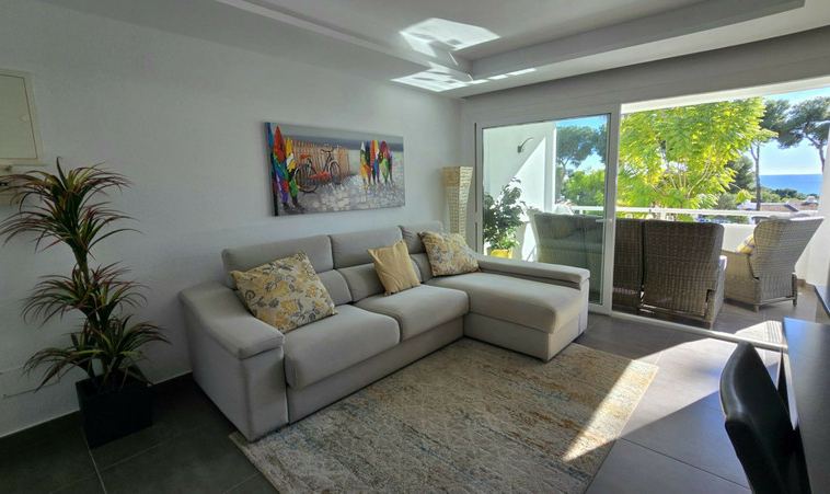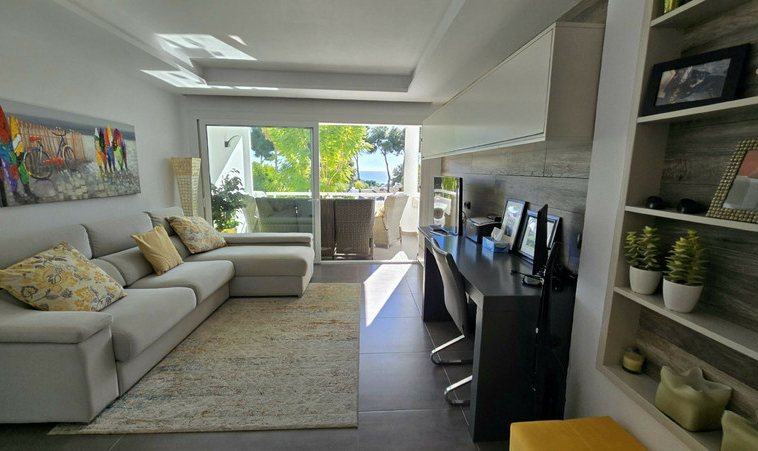 Nuevo en el mercado. Apartamento de piso medio totalmente renovado.€ 359.000. Miraflores. Vistas al mar, piscina y jardín. Enfrentando al sur.