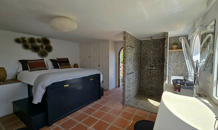 AL ACERCA DE LA PROPIEDAD, SE ENCUENTRA CON JARDINES MADUROS DE FÁCIL MANTENIMIENTO. EN LA PRIMERA PLANTA, A LA IZQUIERDA, SE ENCUENTRA UN DORMITORIO ESTUDIO INDEPENDIENTE CON ACCESO PROPIO. EL ESTUDIO ES MUY LUMINOSO GRACIAS A SUS 3 VENTANAS DE ARCO, CON LAVABO Y DUCHA INDEPENDIENTE, UNA GRAN CAMA DOBLE CON AMPLIO ESPACIO DE ALMACENAMIENTO. LA HABITACIÓN CONDUCE A UN TRASTERO CONVERTIBLE EN COCINA.