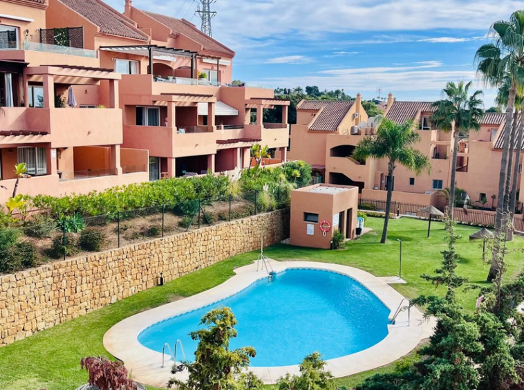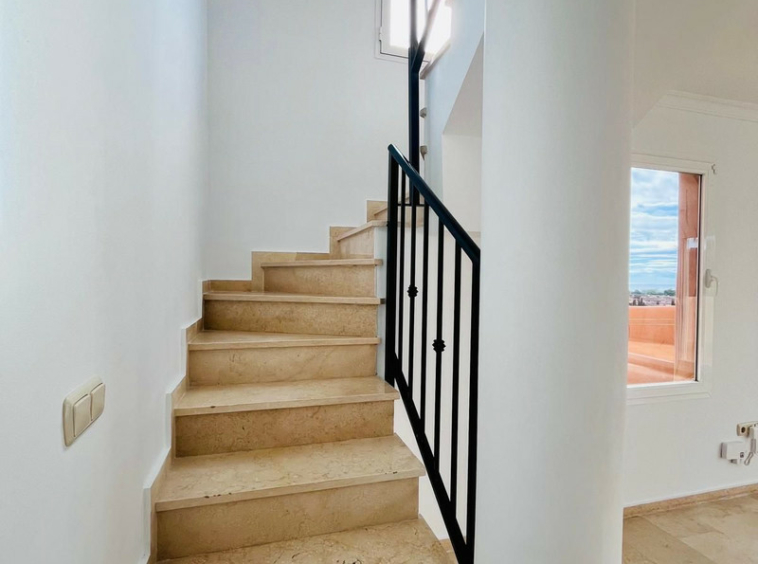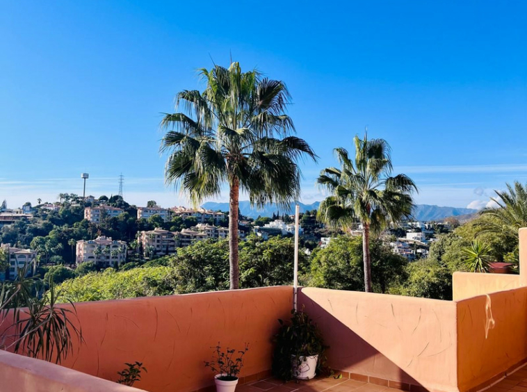 OPORTUNIDAD de adquirir un espectacular ático de 2 dormitorios y 2 baños con VISTAS PANORÁMICAS AL MAR en el prestigioso y tranquilo campo de golf Los Lagos de Santa María, Elviria, Marbella.
