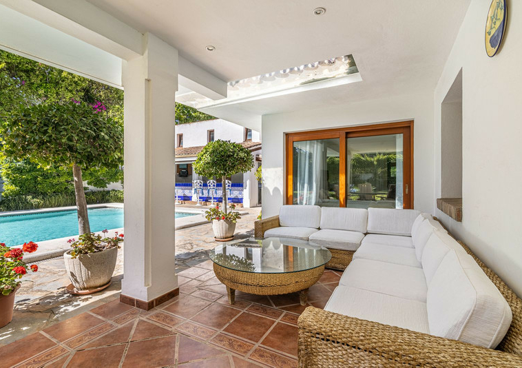Situada en la Nueva Milla de Oro, la casa se encuentra a pocos minutos de la playa, campos de golf, colegios internacionales y toda la oferta de servicios de Estepona, Marbella y Puerto Banús.
