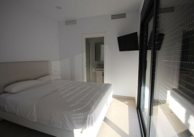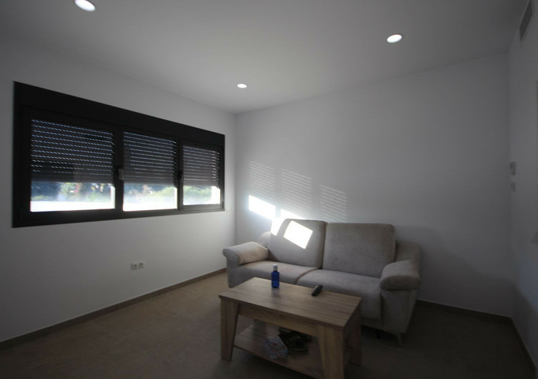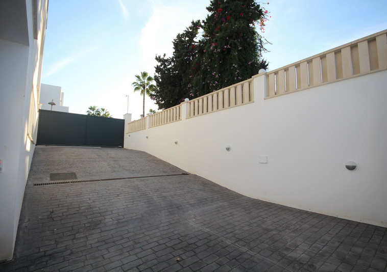 Villa minimalista que consta de tres plantas con un sótano que podría destinarse para gym, sala de juegos, cine, y aparcarmiento para más de 10 coches.