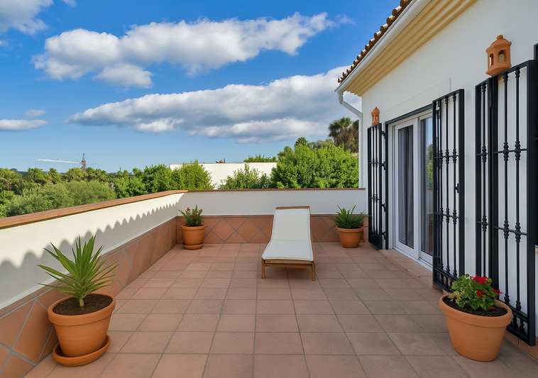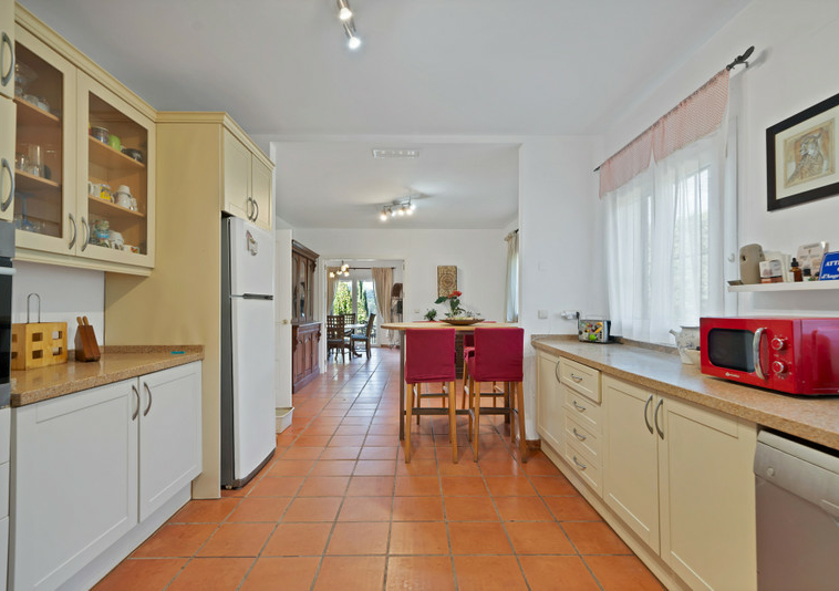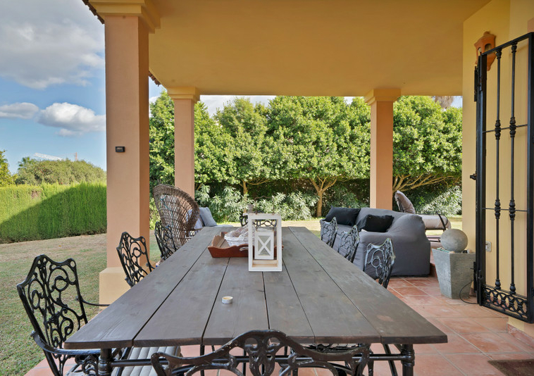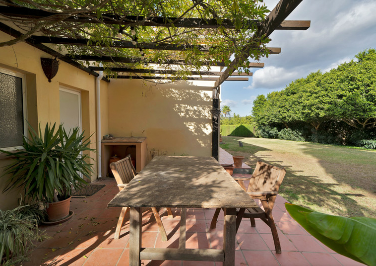 La parcela es plana, completamente aprovechable, lo que la distingue de la mayoría de las villas que se encuentran en dicha zona. El porche rodea la casa al frente y por uno de sus laterales creando 2 ambientes diferenciados que pueden ser destinados a zonas de reunión y relax.