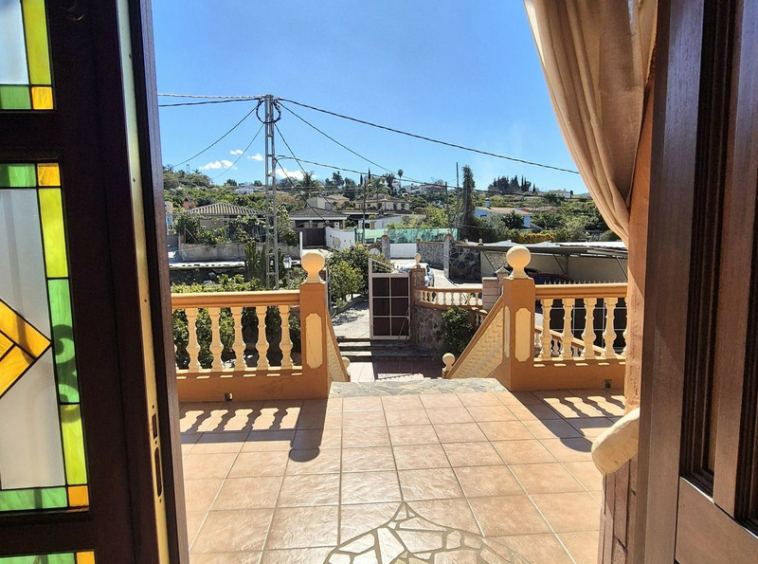 Acceso por una amplia escalera exterior con terraza.