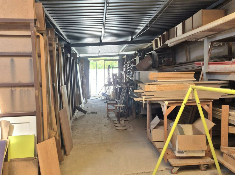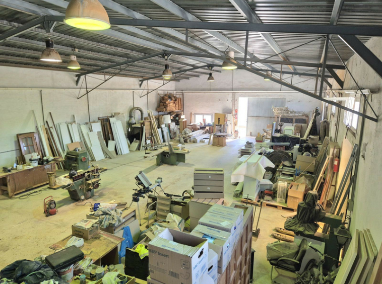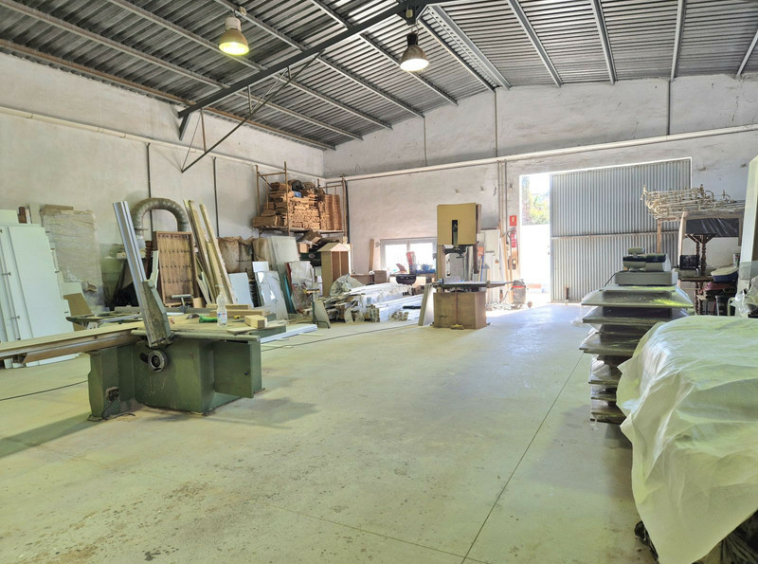 Al ingresar, encontrarás un área de estacionamiento con una pérgola para coches y espacios abiertos para más vehículos. Desde aquí, se accede a un gran almacén/taller de 449 m², un espacio versátil con enorme potencial para desarrollar tu propio negocio, utilizarlo como establo o destinarlo a otros usos. El taller incluye: