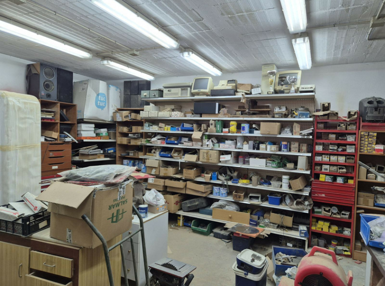 Un área de almacenamiento para inventario en la parte trasera.