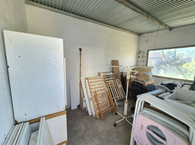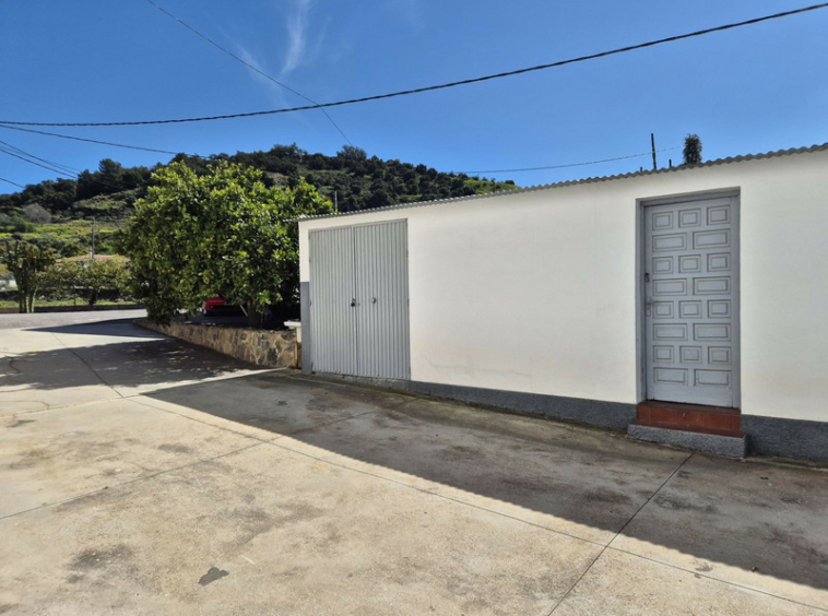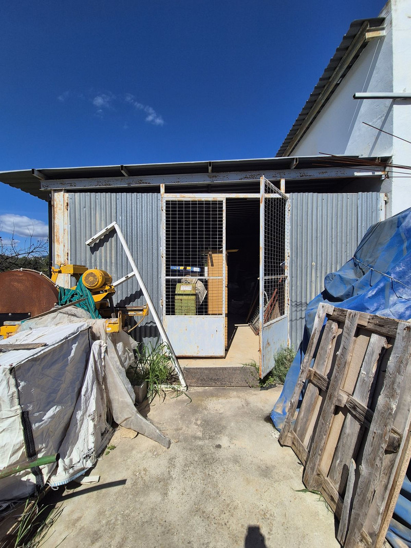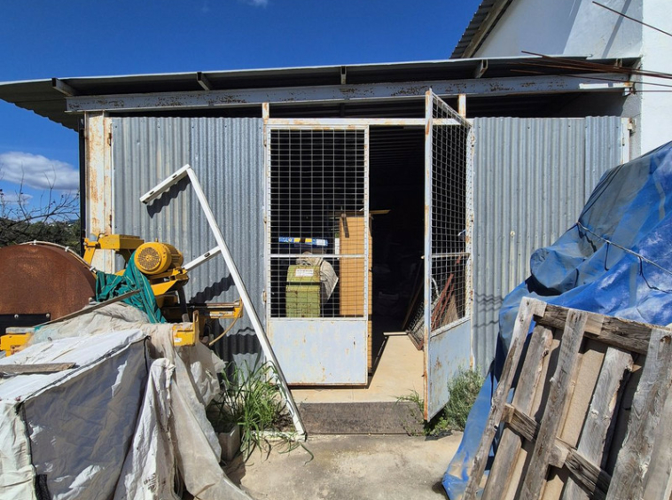 En el exterior, hay almacenes adicionales que pueden convertirse en alojamiento o establos, además de áreas de almacenamiento cubiertas. También cuenta con un terreno con varios árboles frutales.