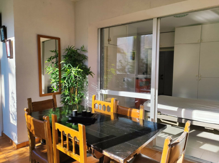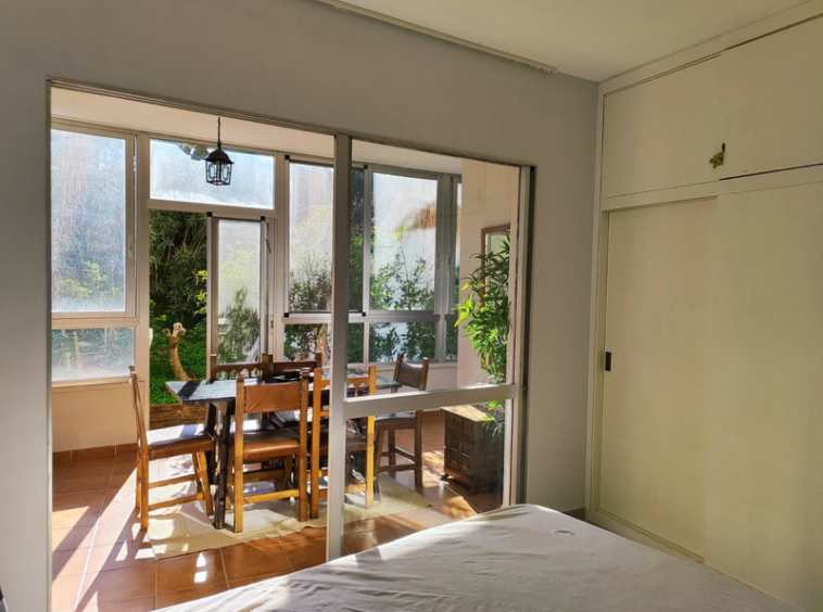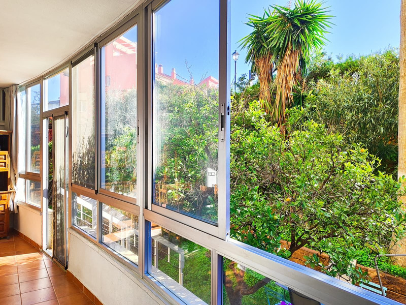 El piso cuenta con una amplia terraza acristalada que se abre a un extenso jardín privado, lleno de césped, árboles y plantas, ideal para disfrutar de momentos al aire libre. La cocina americana está equipada con lavadora y se integra perfectamente con el amplio salón comedor, creando un espacio acogedor y funcional. El dormitorio dispone de armarios empotrados que ofrecen un gran espacio de almacenamiento, y el baño completo está listo para su uso inmediato.