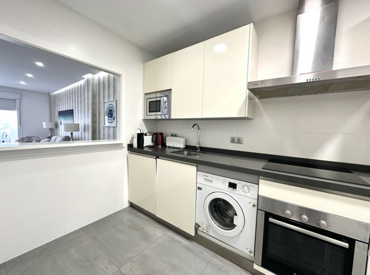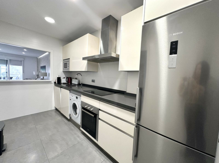 La cocina está completamente equipada e incluye una práctica zona de lavadero independiente. Una distribución funcional y cómoda, ideal tanto para residencia habitual como para segunda vivienda o inversión.