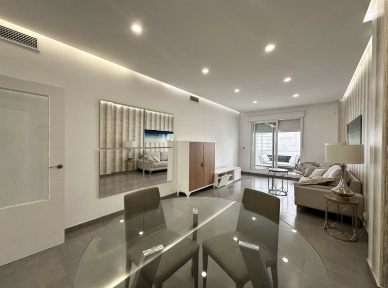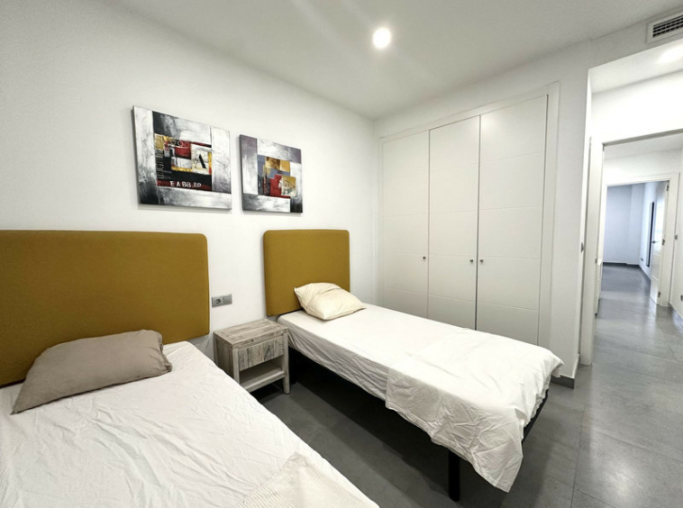 La vivienda es una planta baja con orientación sureste y noroeste, lo que le proporciona una excelente luminosidad y ventilación natural durante todo el día. Dispone de dos dormitorios y dos baños, ambos con armarios empotrados, además de aire acondicionado centralizado para un confort óptimo en cualquier época del año.