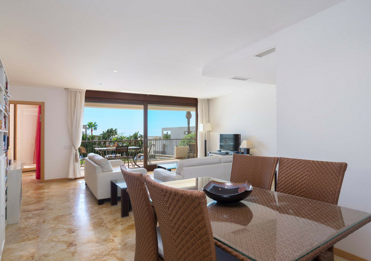 El piso cuenta con una superficie total construida de 164, m2. Además, dispone de una terraza cubierta de 25 m2 y una parte proporcional de zonas comunes de 14,83 m2. Desde el piso podrás disfrutar de vistas parciales al mar y al jardín comunitario con piscina.