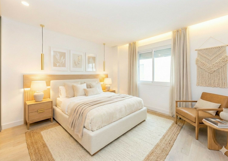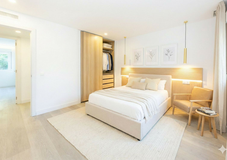 Nota: En algunas imágenes se han añadido muebles mediante IA para ayudar a visualizar mejor los espacios. La vivienda se vende con cocina, baños y cabecero principal instalados.