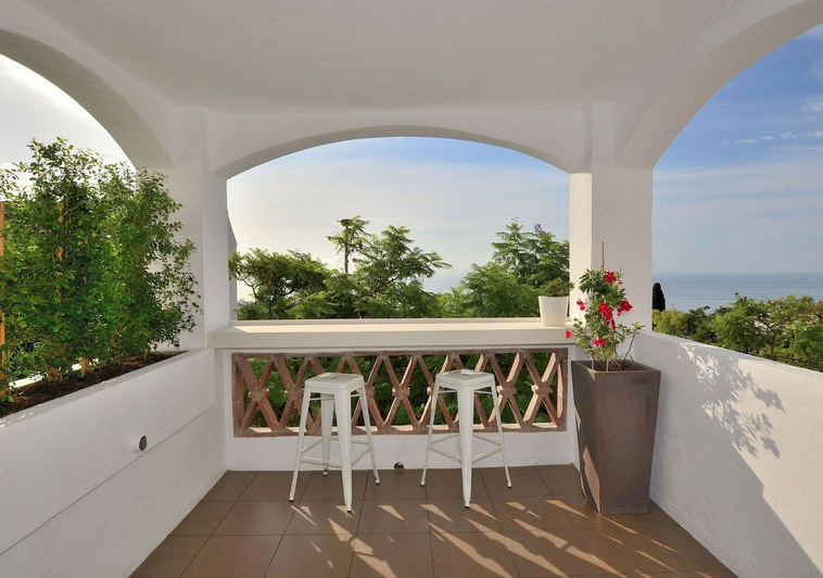 Terraza de 14 m2, orientada al SUROESTE, con bonitas vistas al mar.