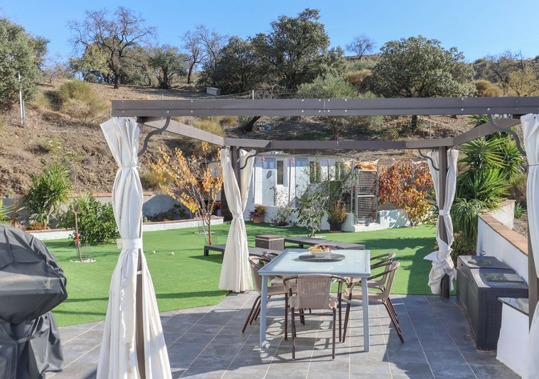 Una terraza sombreada en la parte trasera de la propiedad le da la bienvenida, un rincón fresco e imprescindible durante los meses de verano. A la derecha hay un lavadero independiente.