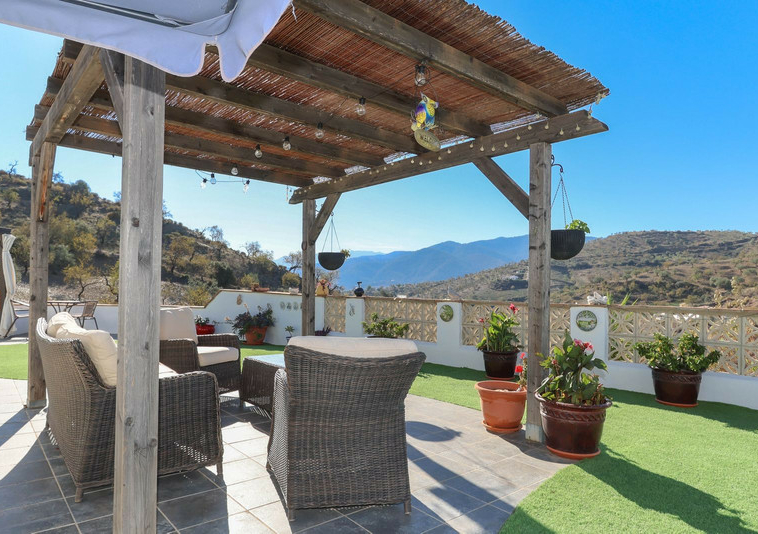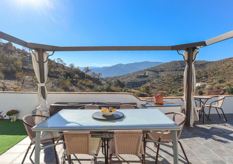 Al entrar en la propiedad, se sentirá atraído por las vistas que enmarcan las puertas del patio y una ventana lateral que enmarca la vista del pueblo de Yunquera a lo lejos.