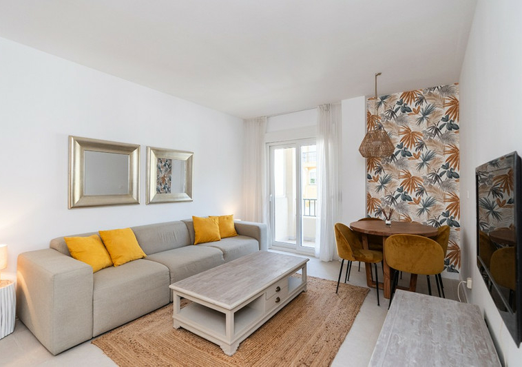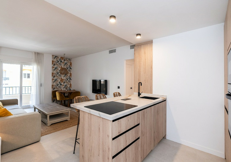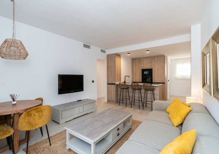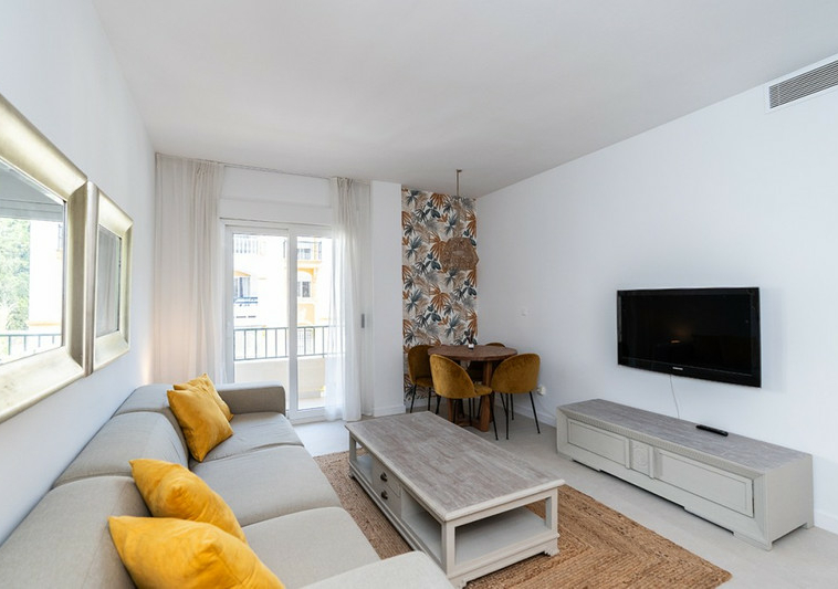 Precioso apartamento completamente reformado y muy luminoso en el centro de Marbella. El apartamento se encuentra en una segunda planta con ascensor y dispone de dos dormitorios, dos cuartos de baño, cocina moderna abierta al salón y pequeña terraza. Elegantemente amueblado y decorado y equipado con electrodomésticos modernos y además con persianas, las cuales son eléctricas en el salón y en el dormitorio principal. La playa, el casco antíguo y todo lo tiene a pocos minutos caminando. Ideal para vivir todo el año como para pasar las vacaciones.