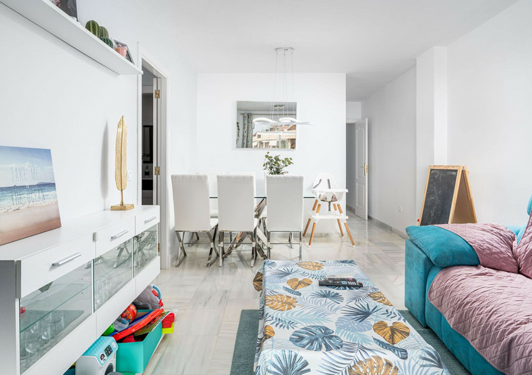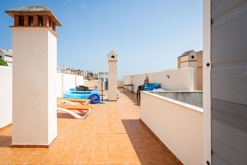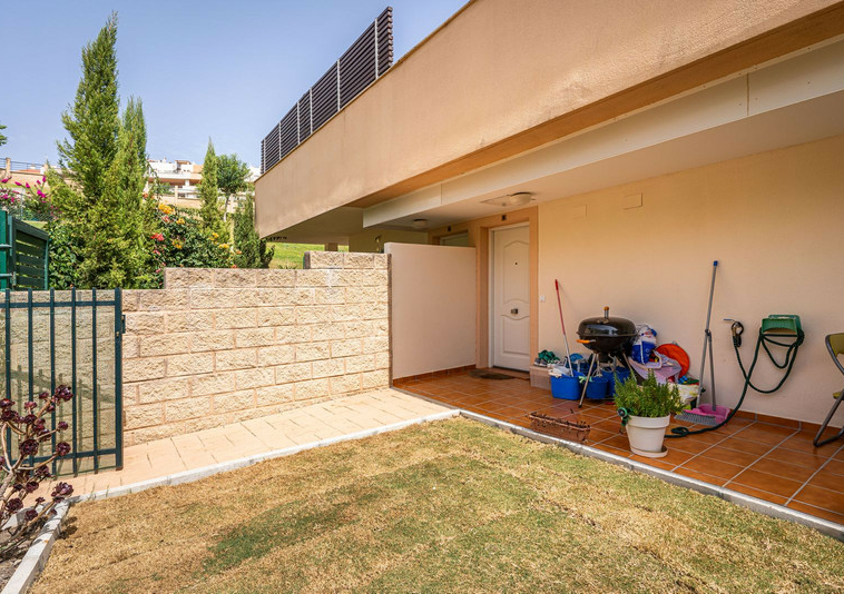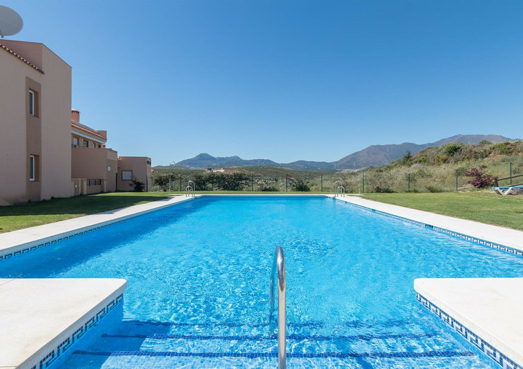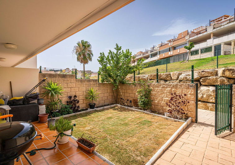 Precioso apartamento en planta baja con increíbles vistas panorámicas al mar. La vivienda tiene un jardín exterior donde puedes tomar el sol, instalar una piscina de plástico, o pasar un rato con tu familia y/o amigos tomando algo. Luego tenemos una entrada que nos lleva a la cocina independiente, que incluye lavadero aparte, lo que te proporciona mayor espacio y confort. Pasamos a un salón es muy amplio y tiene mucha luz, con salida directa a la terraza cubierta, con unas vistas impresionantes a toda la bahía, para relajarte tomando algo, hablando, leyendo, mientras observas el mar. Y en esa misma terraza tienes unas escaleras que te llevan a un Solarium, donde puedes pasar el tiempo tumbado relajadamente, mientras observas las increíbles vistas del mar. Le siguen 3 dormitorios con armarios empotrados bastante amplios, uno de ellos con baño en suite para disponer de una mayor comodidad y privacidad. Además la vivienda tiene Aire Acondicionado centralizado en todas las habitaciones. La vivienda tiene plaza de garaje cubierta muy cómoda. Y por supuesto con piscina comunitaria para darte un buen baño o tomar el sol. La urbanización se encuentra en una zona muy tranquilada, sin ruidos, para disfrutar de una mayor tranquilidad. A unos 10 minutos de la playa en coche, y a unos 7 minutos de supermercados, tiendas, y demás restaurantes ofreciendo variedad. Además tiene buena comunicación con Estepona-Marbella-Málaga, con salida a la autovía/autopista. Dispone de zonas para jugar al golf cercanas en unos 5 minutos. Un lugar ideal para disfrutar de buen tiempo, ocio y playa.