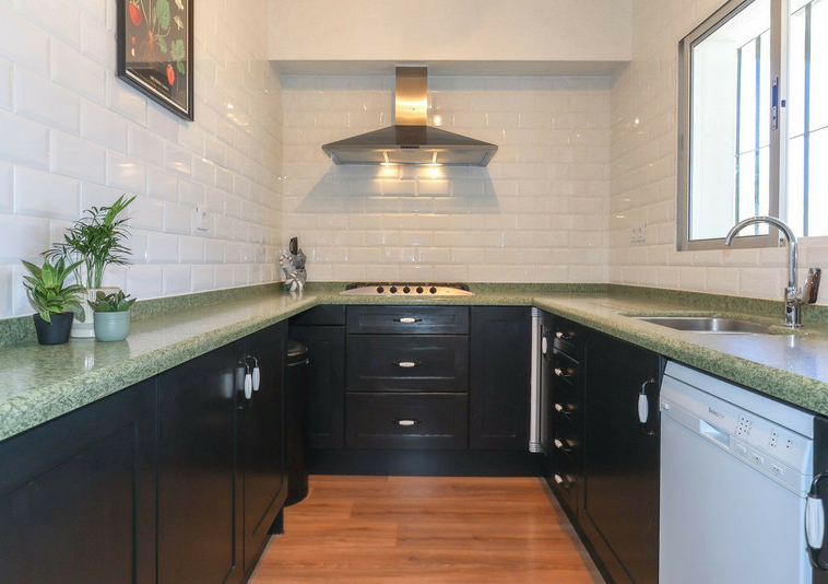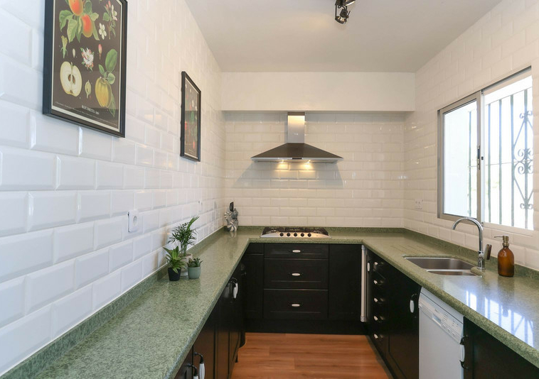 La cocina es luminosa y acogedora, con una ventana con vistas a la terraza y al valle. Junto a la cocina se encuentra un comedor formal, perfecto para recibir visitas.