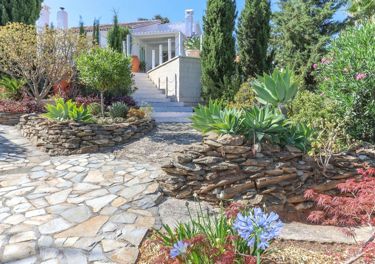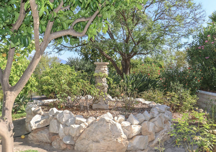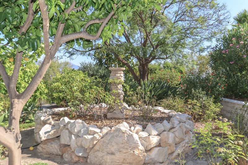 La propiedad se encuentra en una ladera, con terrazas cuidadosamente diseñadas y repleta de plantas mediterráneas maduras, ofreciendo color y carácter durante todo el año.