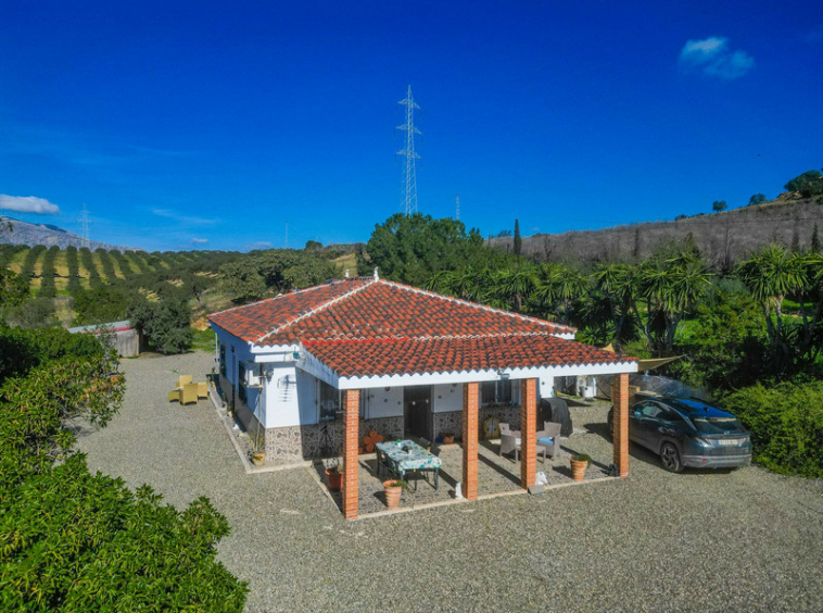 Situada a solo 10 minutos del encantador pueblo de Álora, la propiedad es fácilmente accesible a través de un camino de tierra de 1 km y disfruta de total privacidad rodeada de naturaleza y vistas panorámicas al campo.