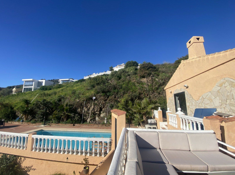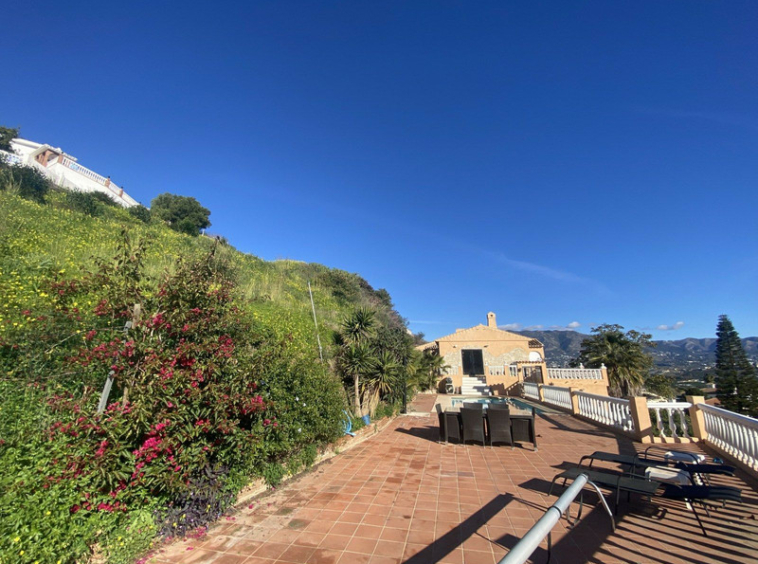 El chalet principal, de una sola planta, cuenta con 4 dormitorios, 2 baños (el principal con baño en suite y vestidor, y un aseo de invitados), varias terrazas rodean el chalet para disfrutar del sol y una gran piscina privada orientada al sur.