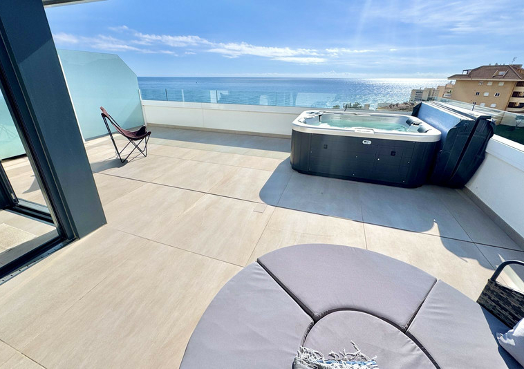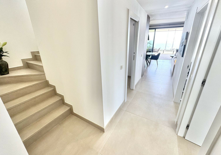 Este impresionante ático dúplex esquinero en venta no solo se encuentra en uno de los mejores y más nuevos complejos residenciales de la zona, sino que además goza de una ubicación privilegiada en todo el complejo, con dos amplias terrazas orientadas al suroeste que ofrecen vistas panorámicas al mar que quitan el aliento.