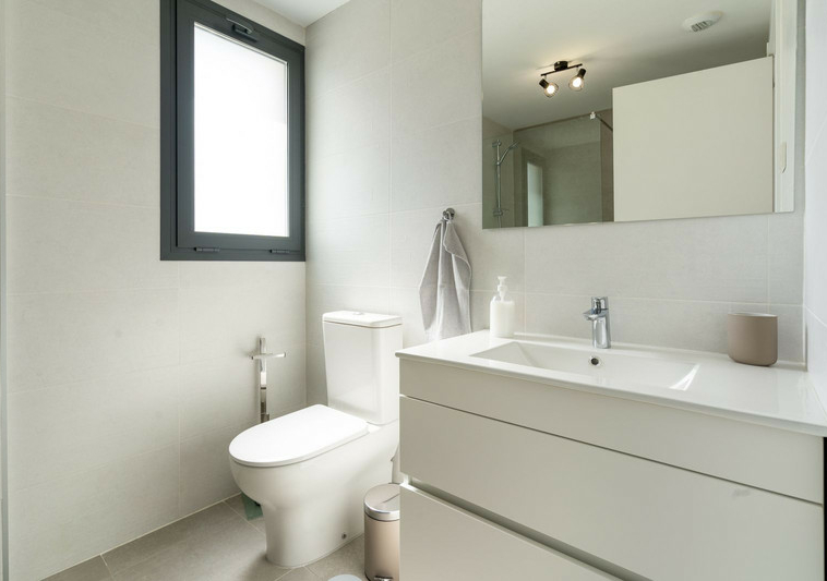 Suelos porcelánicos, aportando un diseño sofisticado y de fácil mantenimiento.