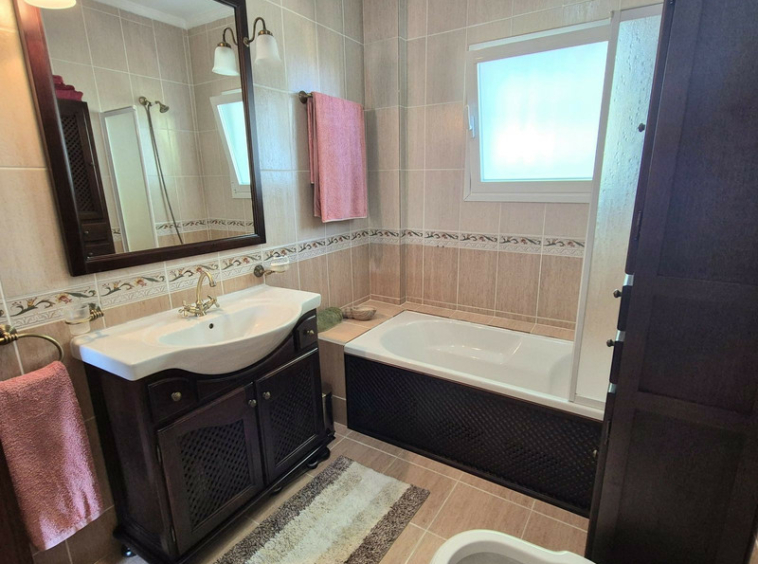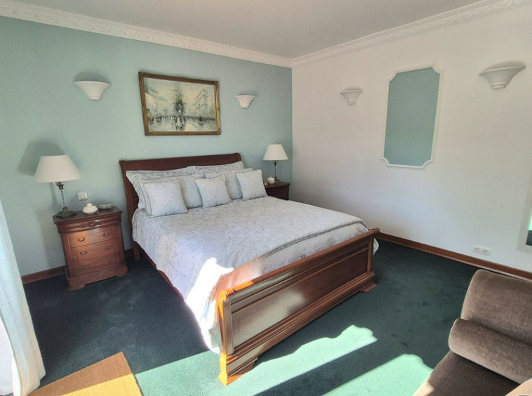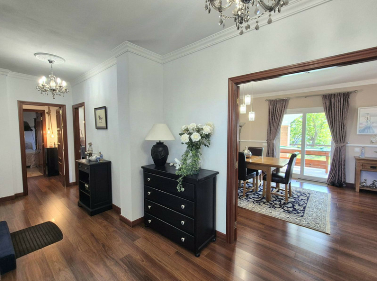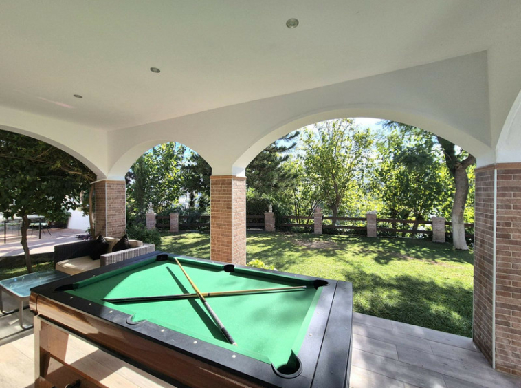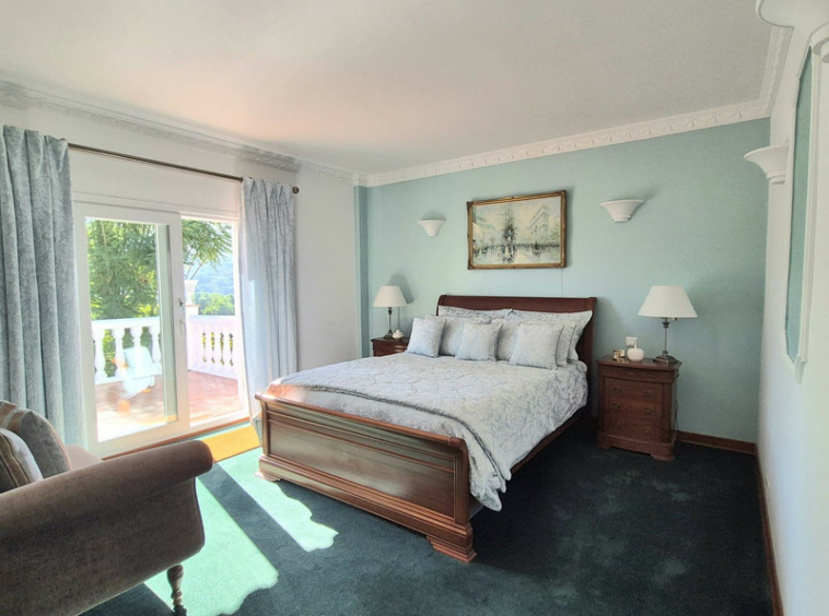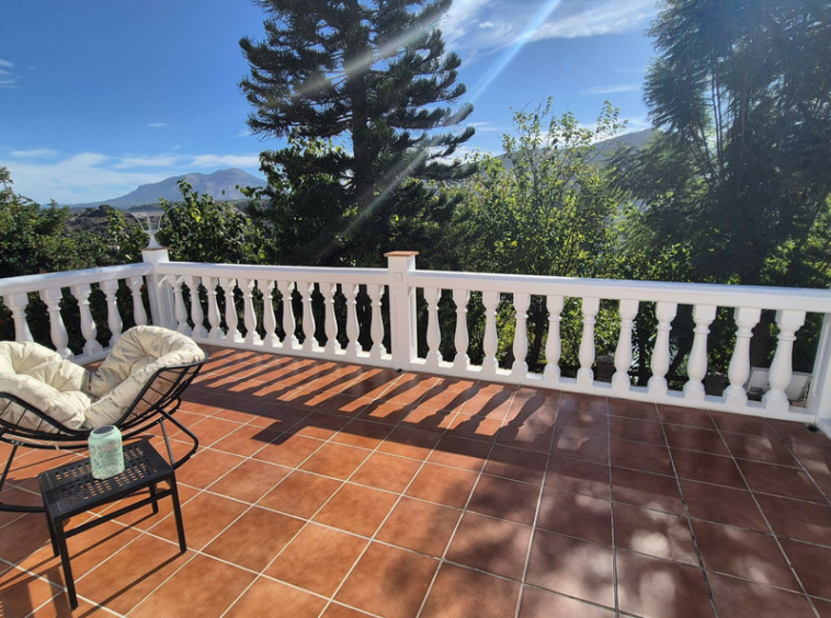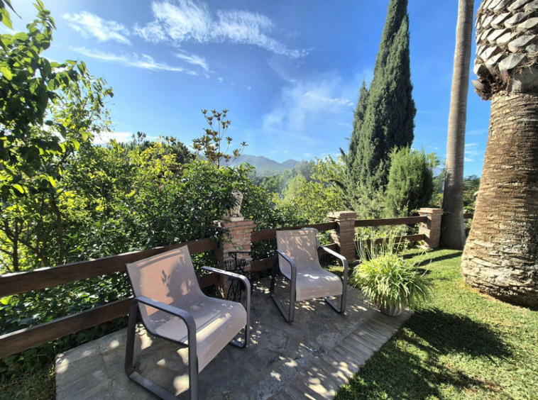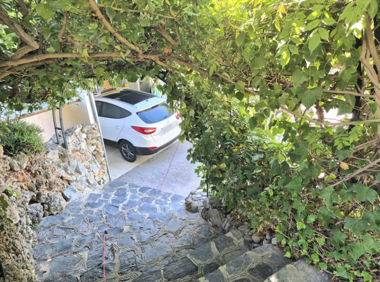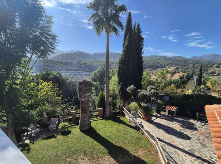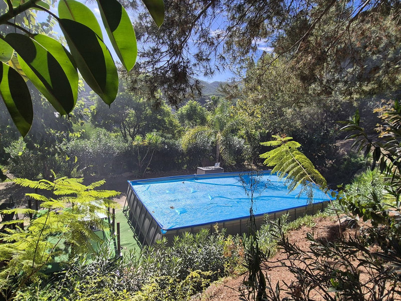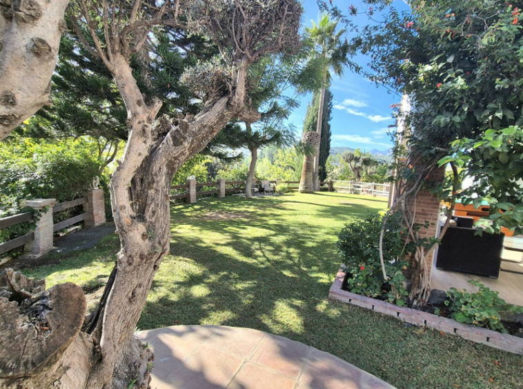 Exterior. La propiedad de esta villa se distribuye en varios niveles. En el nivel superior se encuentra la casa, con un extenso jardín, césped, terrazas y hermosas vistas a las montañas, el bosque, el campo y el parque nacional circundantes. Unas escaleras descienden hasta la cochera, donde hay un garaje cubierto para dos coches y aparcamiento adicional, todo ello con acceso mediante una puerta eléctrica para vehículos grandes. Un camino de entrada conduce a los niveles inferiores del jardín y a una gran piscina elevada de 5 x 10 metros. Para mayor comodidad, hay una pequeña construcción con fregadero, nevera e inodoro. El jardín cuenta con numerosos árboles frutales, arbustos y plantas. La propiedad cuenta con cámaras de seguridad para su tranquilidad.