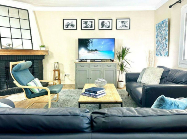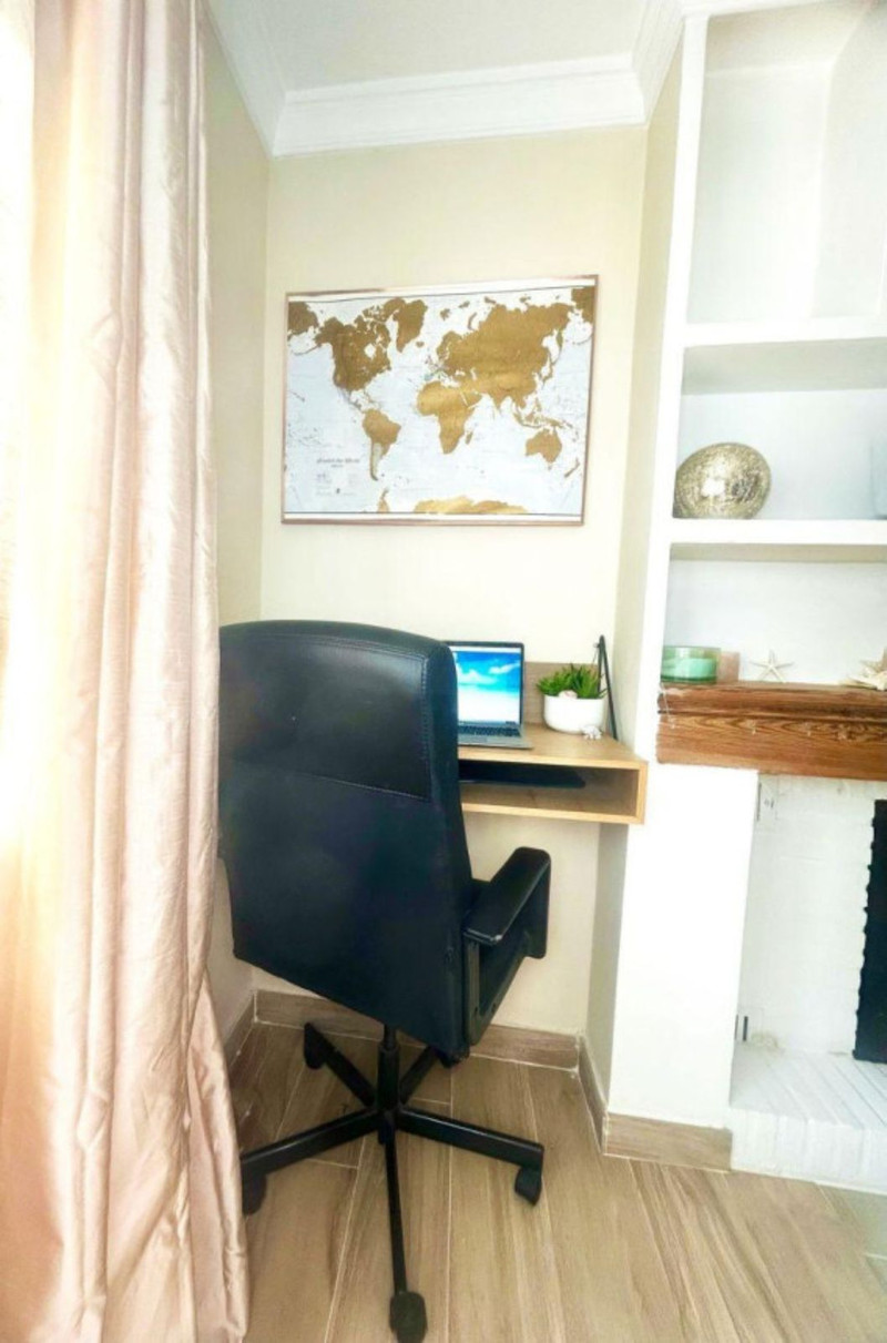 La planta baja de planta abierta consta de una luminosa sala de estar, comedor y cocina con un rincón de oficina, ideal para trabajar desde casa, dos chimeneas de leña y un baño.