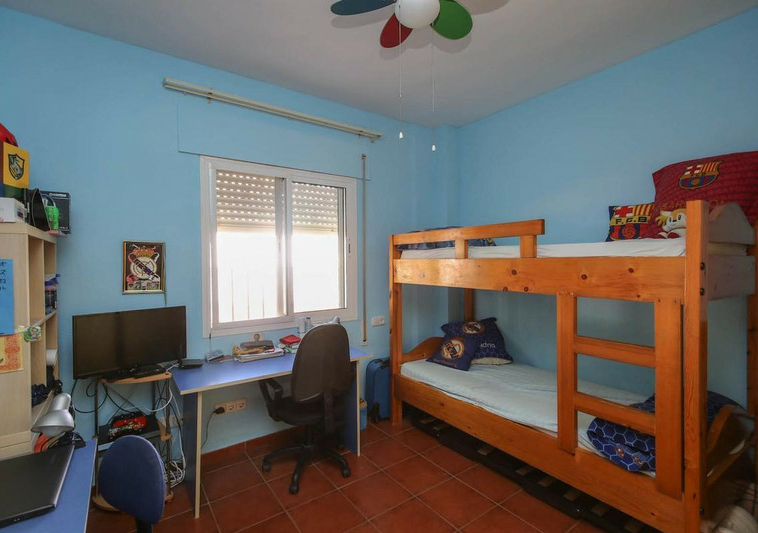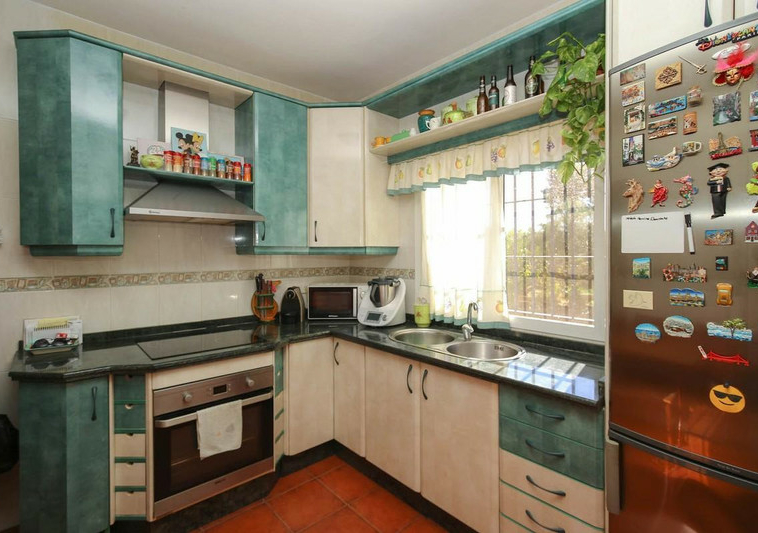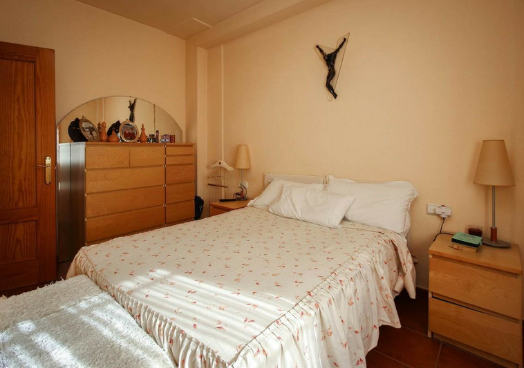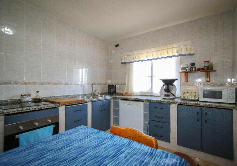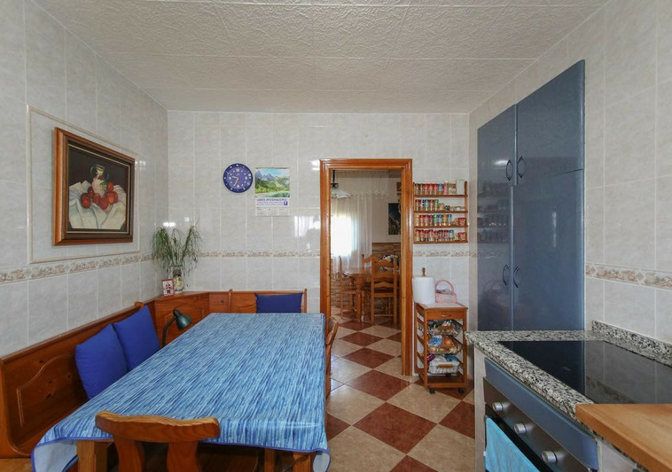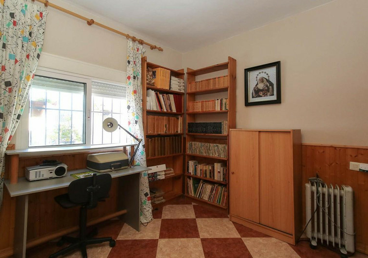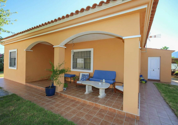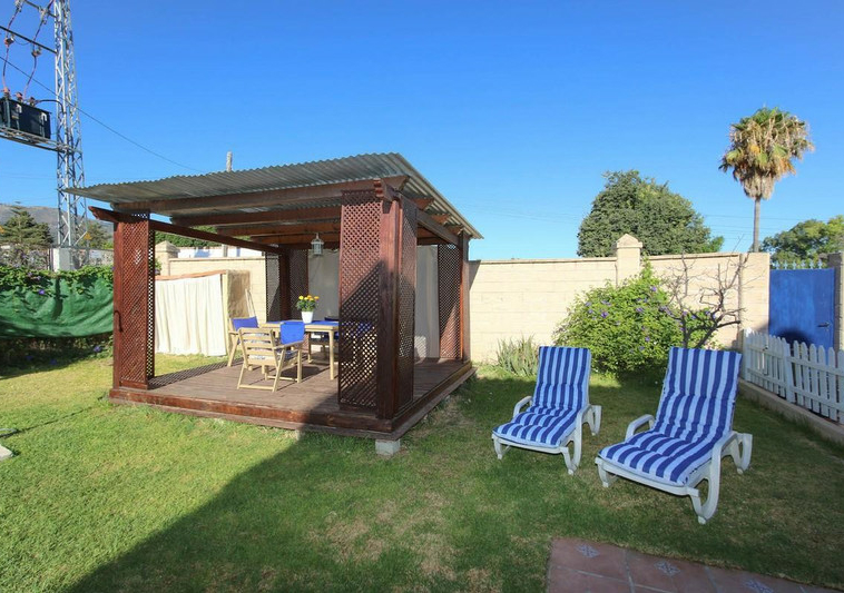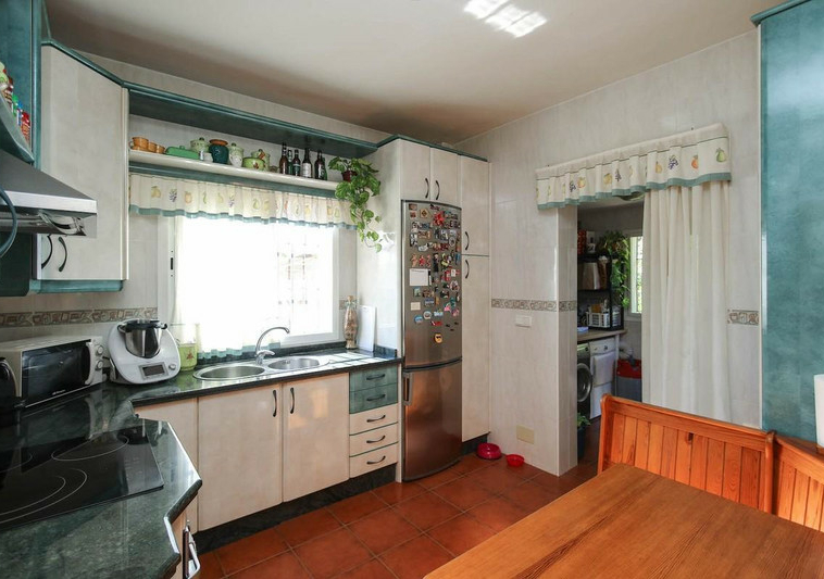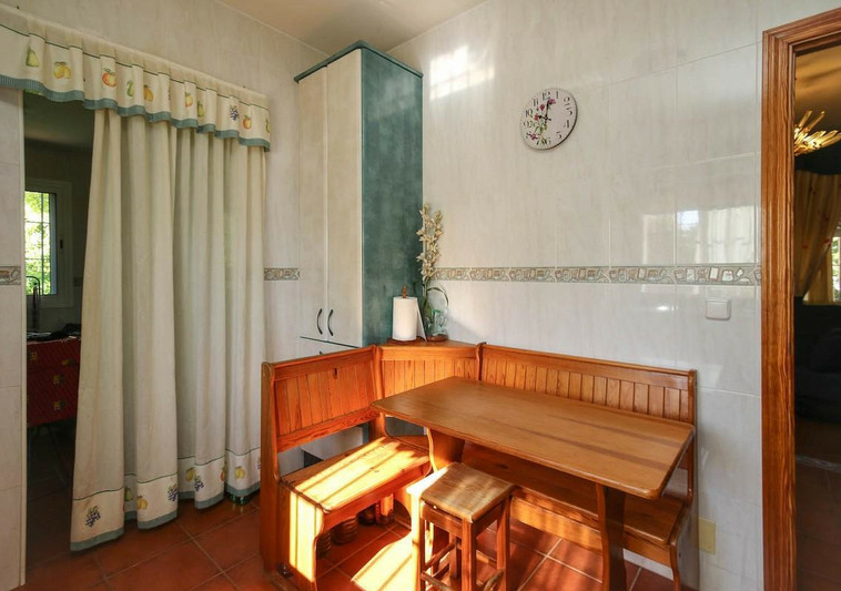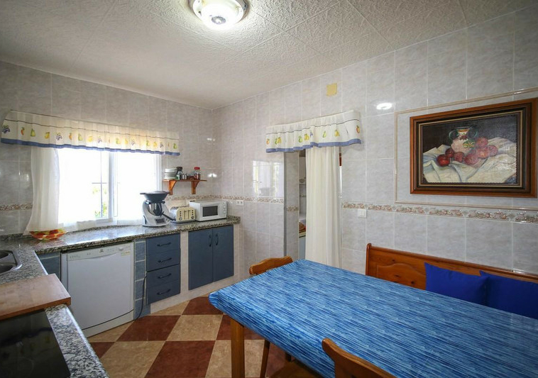 Pasando a la segunda casa. Un pequeño jardín le da la bienvenida a esta propiedad con un gran almendro seguido de un porche cubierto con arcos. Esta propiedad cuenta con mucha luz natural. Detrás de la segunda casa hay limoneros y naranjos así como un invernadero.