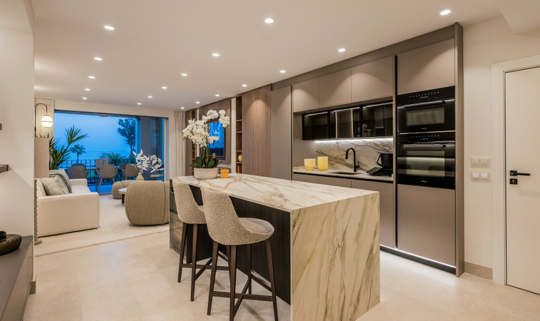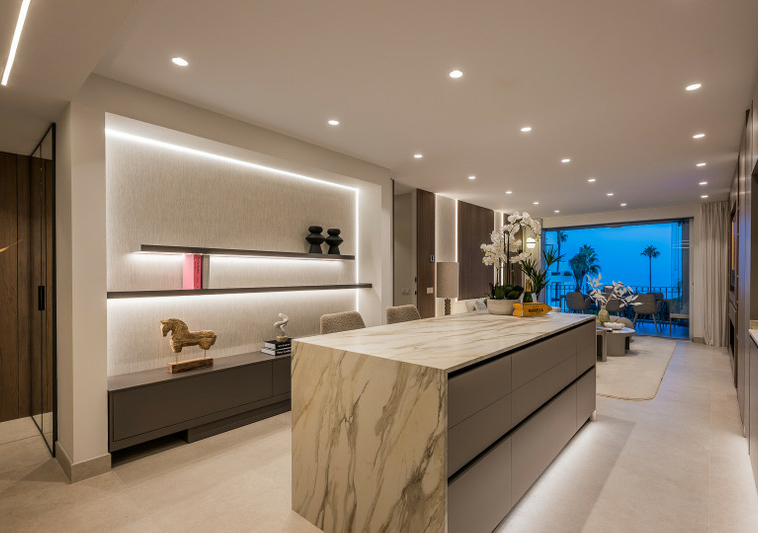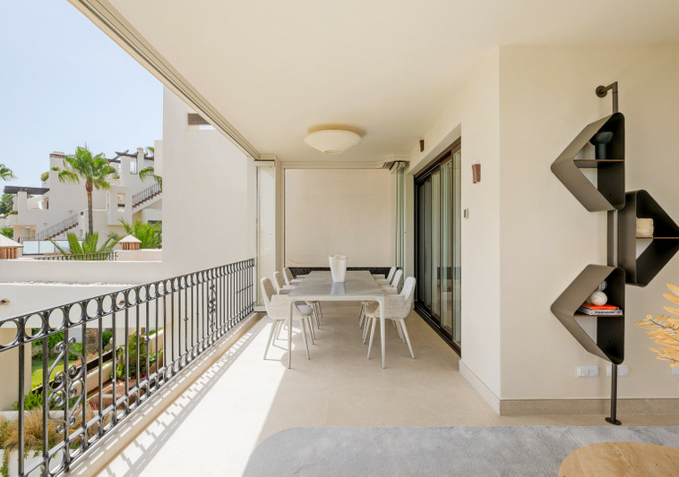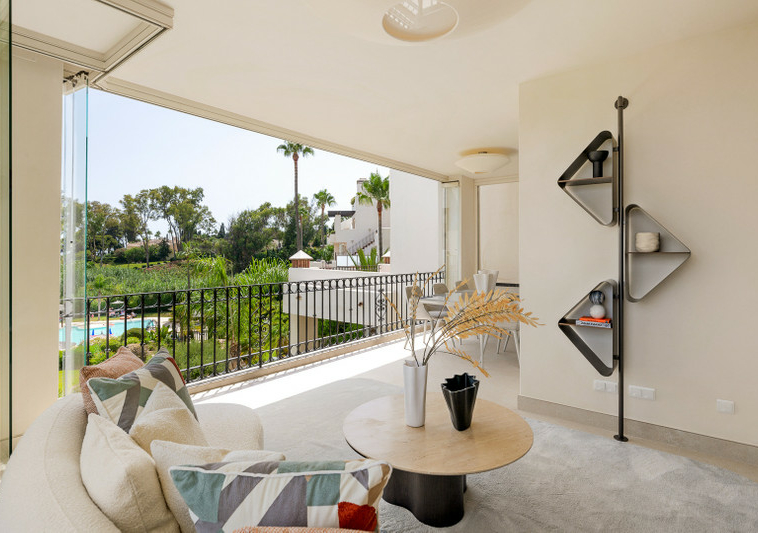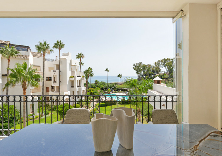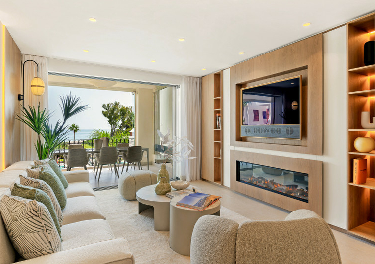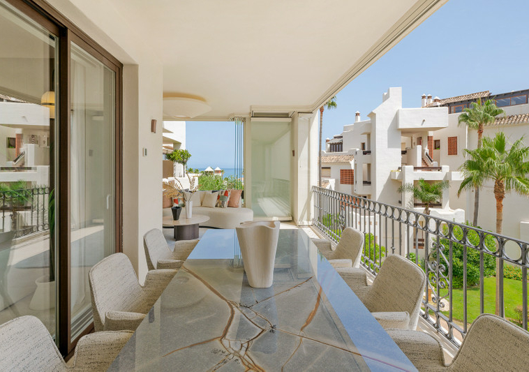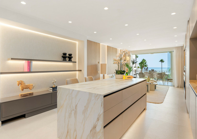 Este elegante apartamento ha sido totalmente renovado con los más altos estándares, ofreciendo impresionantes vistas al mar y a los jardines. Su orientación suroeste garantiza una excelente luminosidad durante todo el día, mientras que la terraza con cortinas de cristal y suelo radiante amplía el espacio habitable para disfrutarlo durante todo el año.