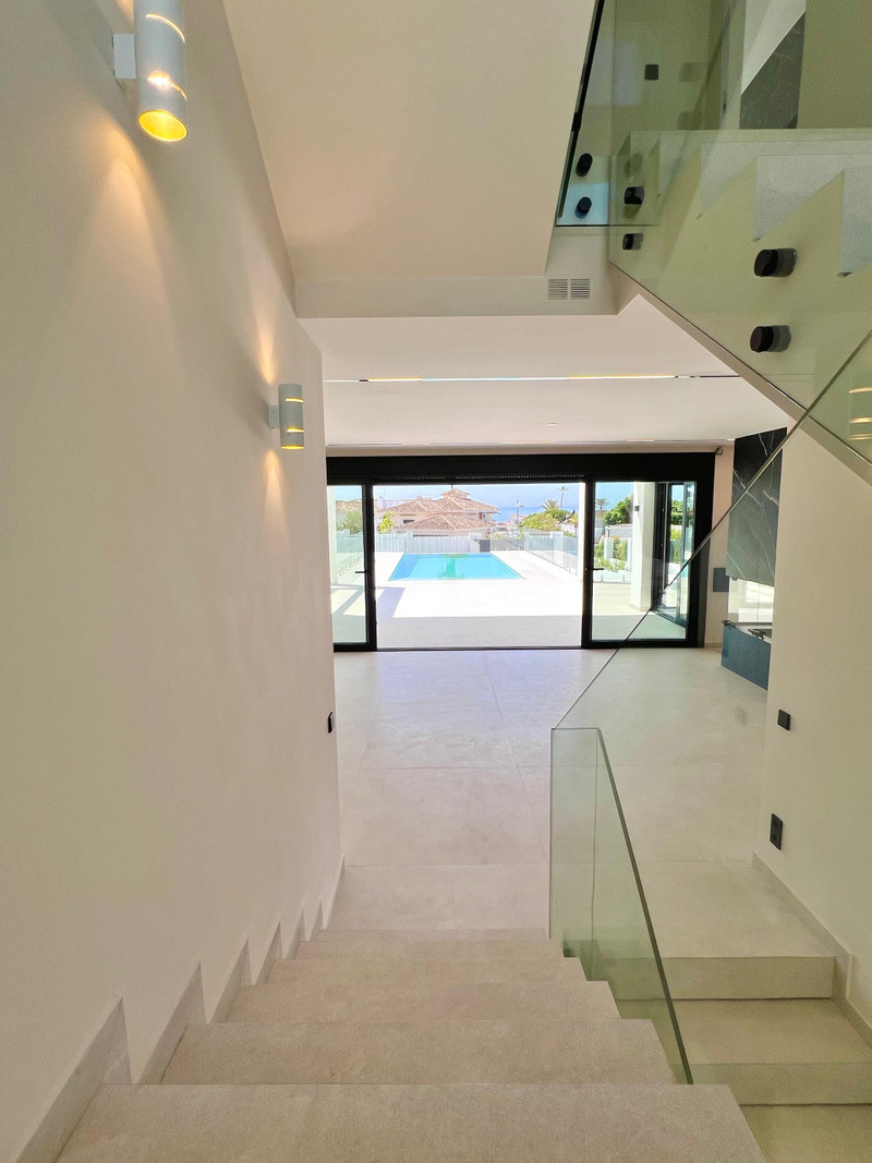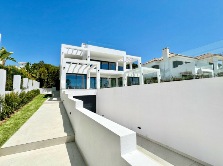 Ubicada en un hermoso rincón de la exclusiva Elviria. Esta elegante villa tiene perfección estética y las vanguardias tecnológicas se unen en una exquisita obra arquitectónica.