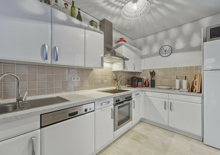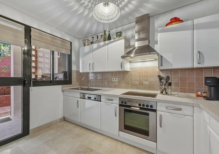 La cocina es independiente y espaciosa, con un lavadero adjunto que también tiene acceso directo a una de las terrazas. Esta terraza disfruta de sombra durante la mayor parte del día, siendo perfecta para comer al aire libre durante los meses más calurosos del verano.
